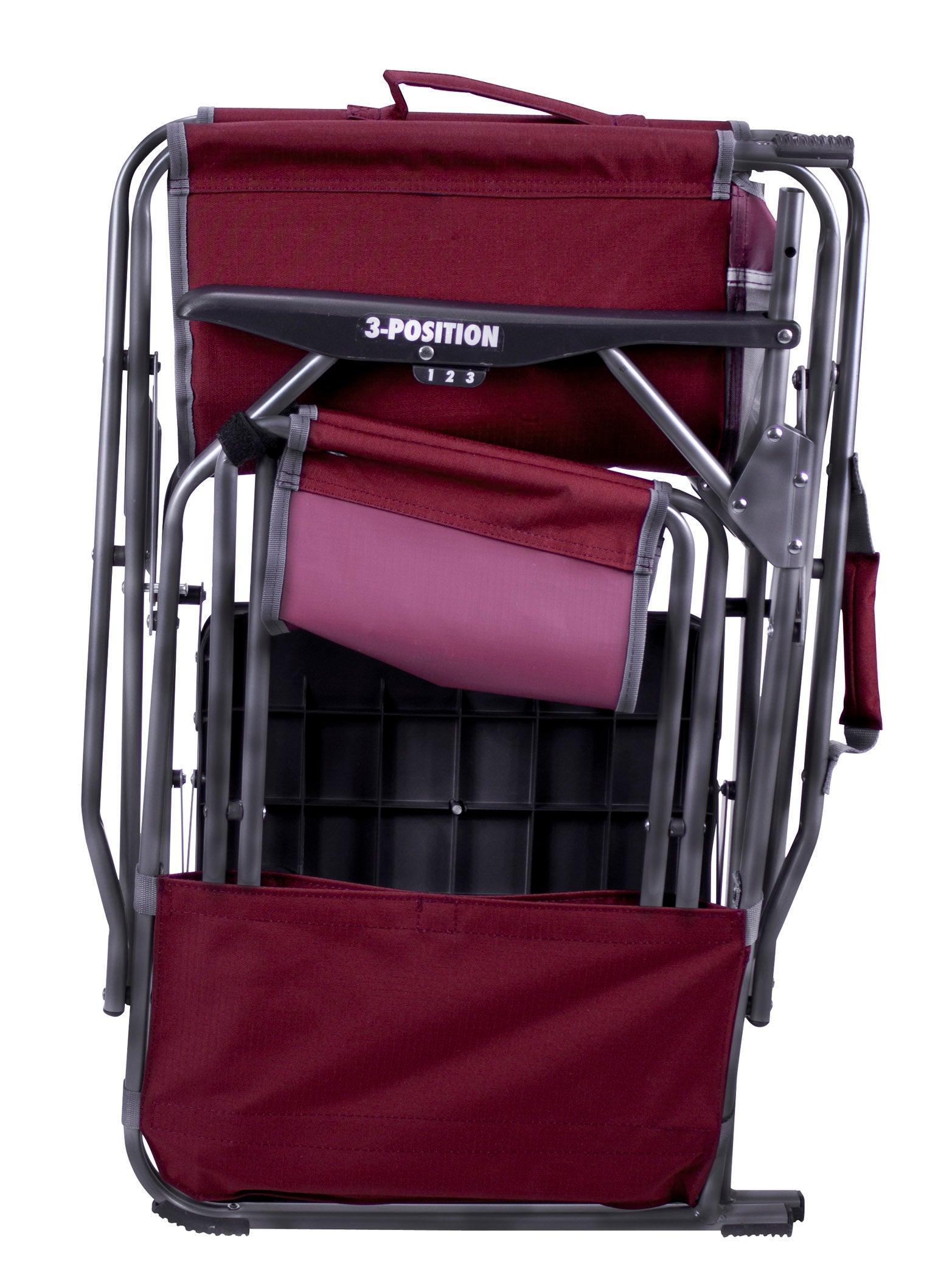 Three-position adjustable backrest Ottoman, fits securely within chair when not in use.