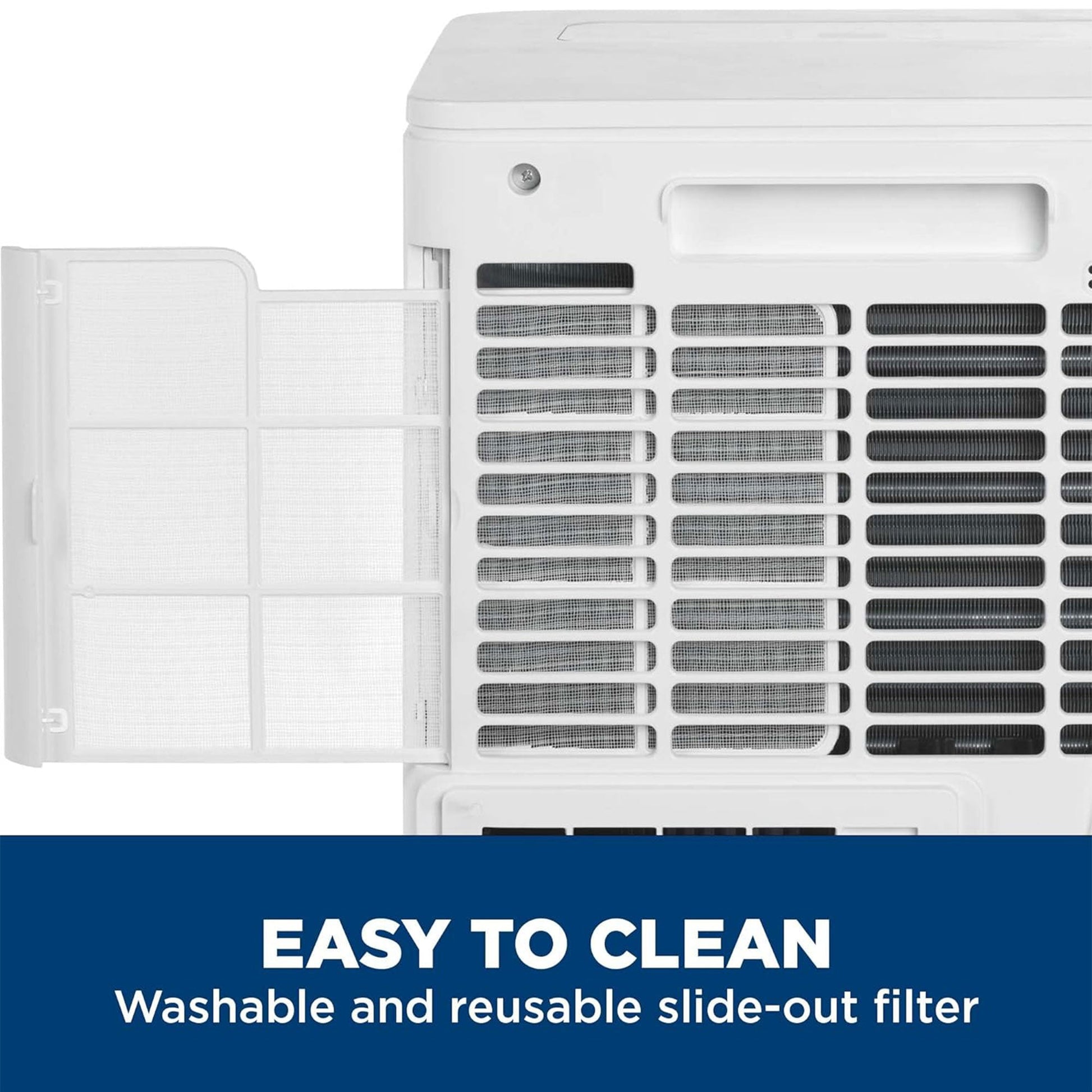 - Includes easy-roll casters, continuous fan mode, a removable and washable filter, a 24-hour on/off timer, and auto restart for seamless operation and maintenance