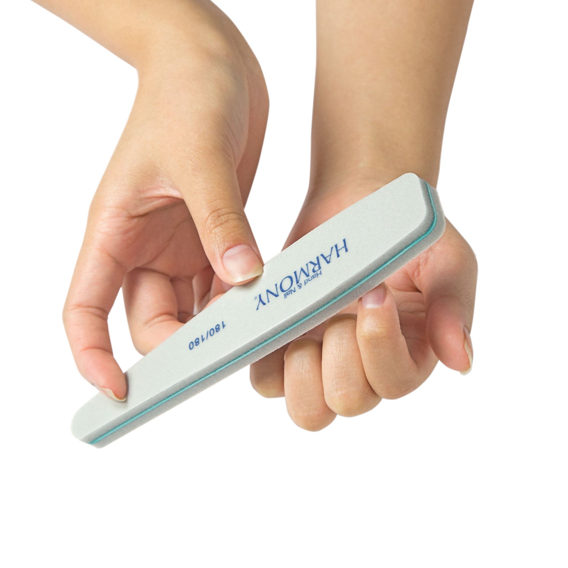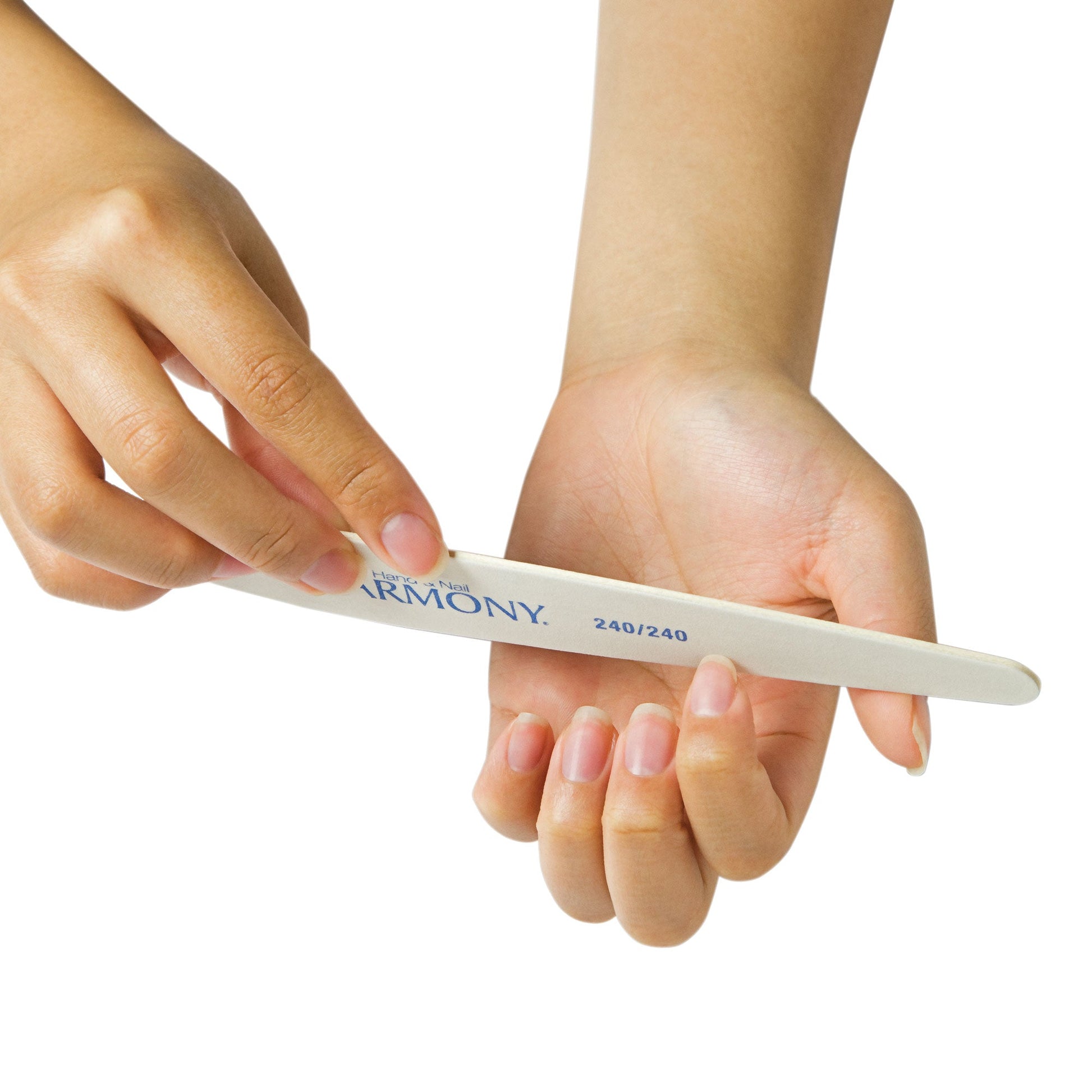 - Refine and finish nail surface with 180/180 grit file, and remove bumps and ridges, while shaping natural nail edges with 240/240 grit file
