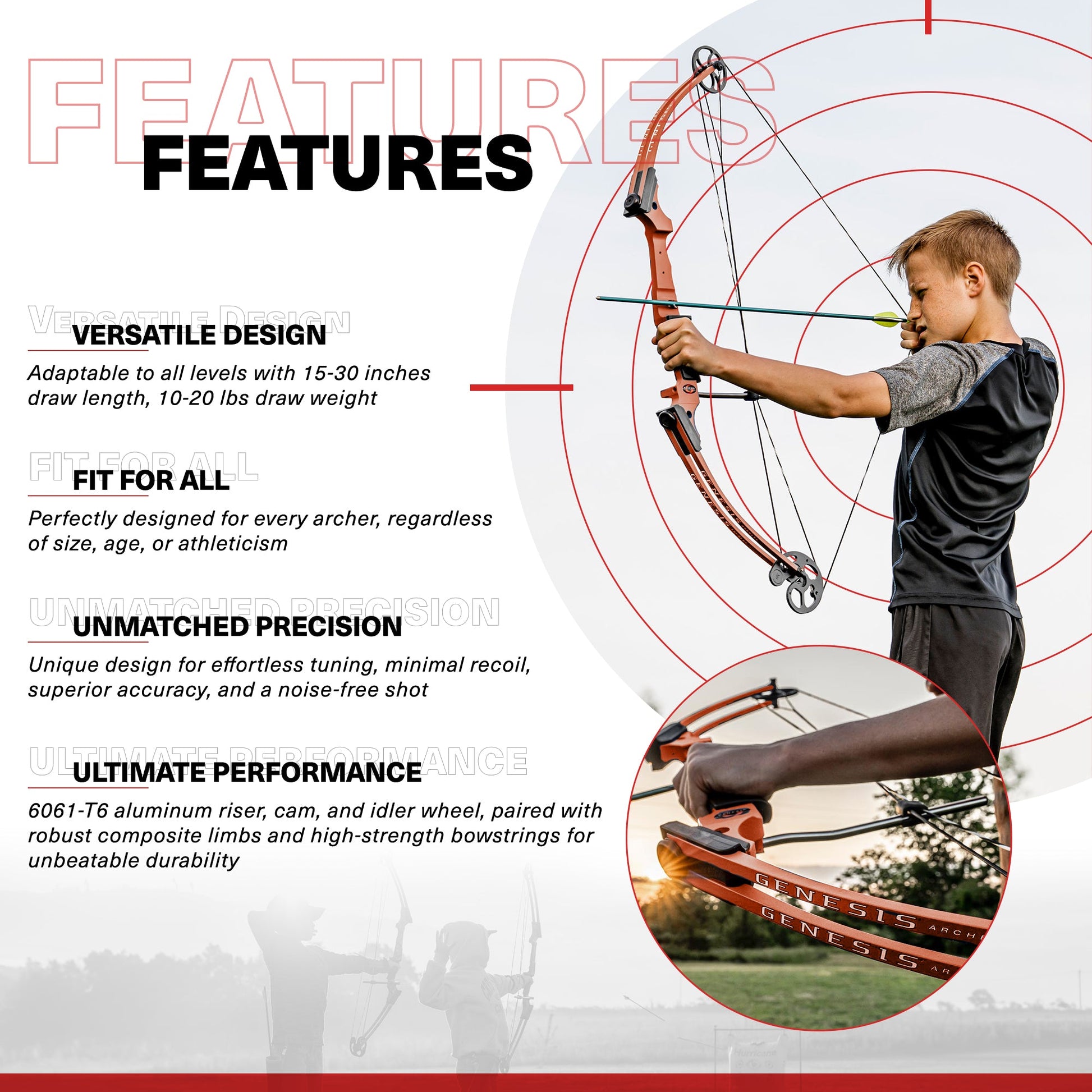 Whether you're a novice beginner or an experienced archer, the Genesis Archery Original Compound Bow and Arrow Kit is the best gateway to a new archery experience for all ages and skill levels. Feel the smoothness and precision with every shot you take.