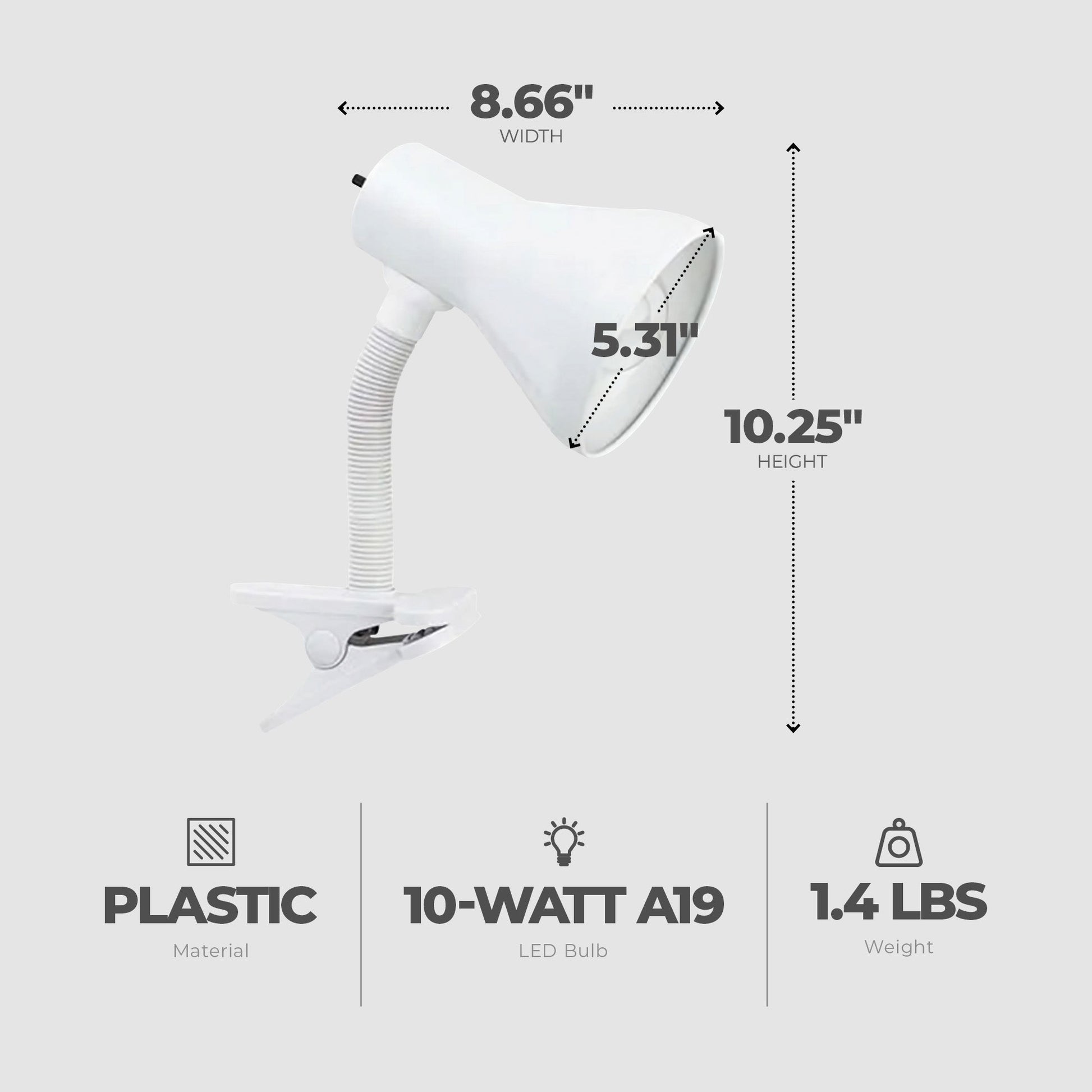 Globe Electric 10.25" LED Goose Neck Clip Lamp with Rotary On/Off Switch, White