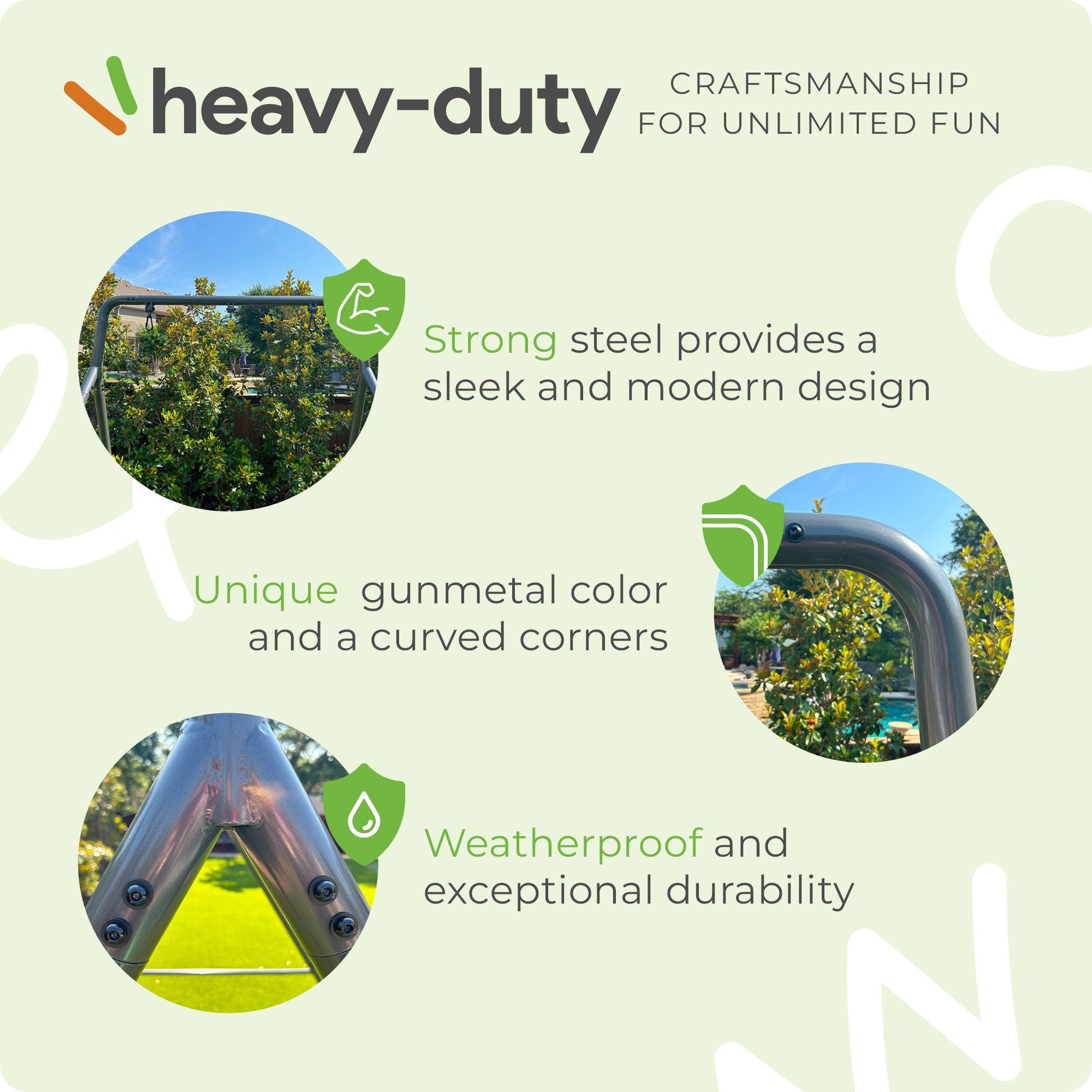 - Wide frame for a single swing provides a sleek and modern design that is sturdy and built for fun