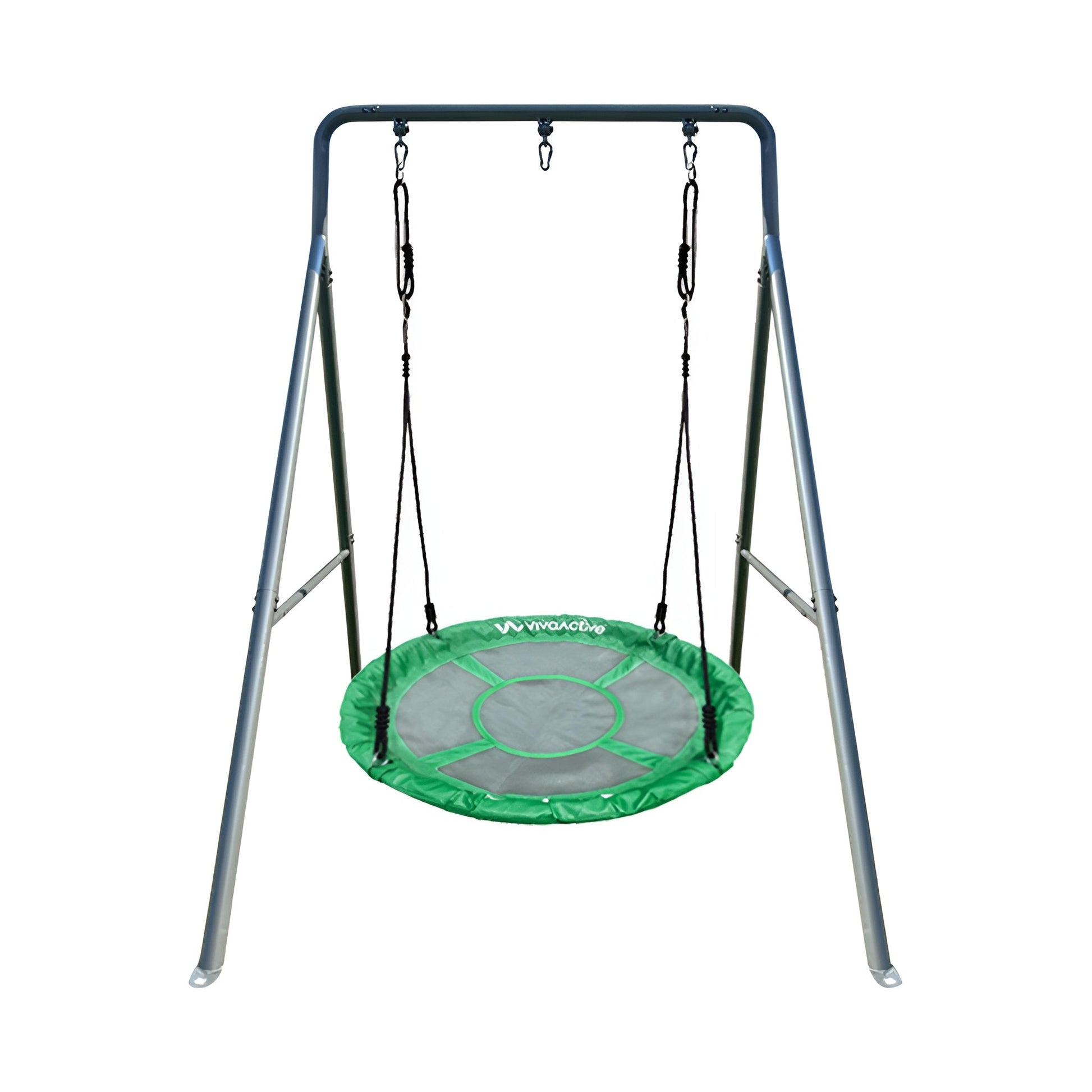 - Round platform design offers a spacious and comfortable seating area, allowing multiple users to enjoy swinging together
