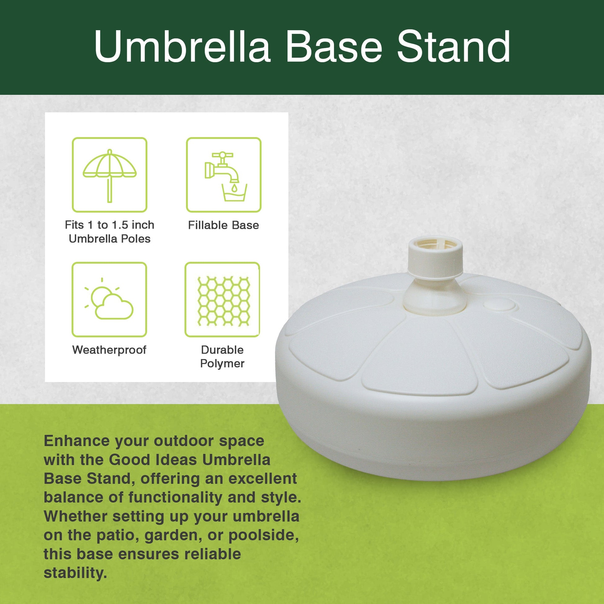 Good Ideas Outdoor Umbrella Stand Patio Base for 1 and 1.5 Inch Poles, White