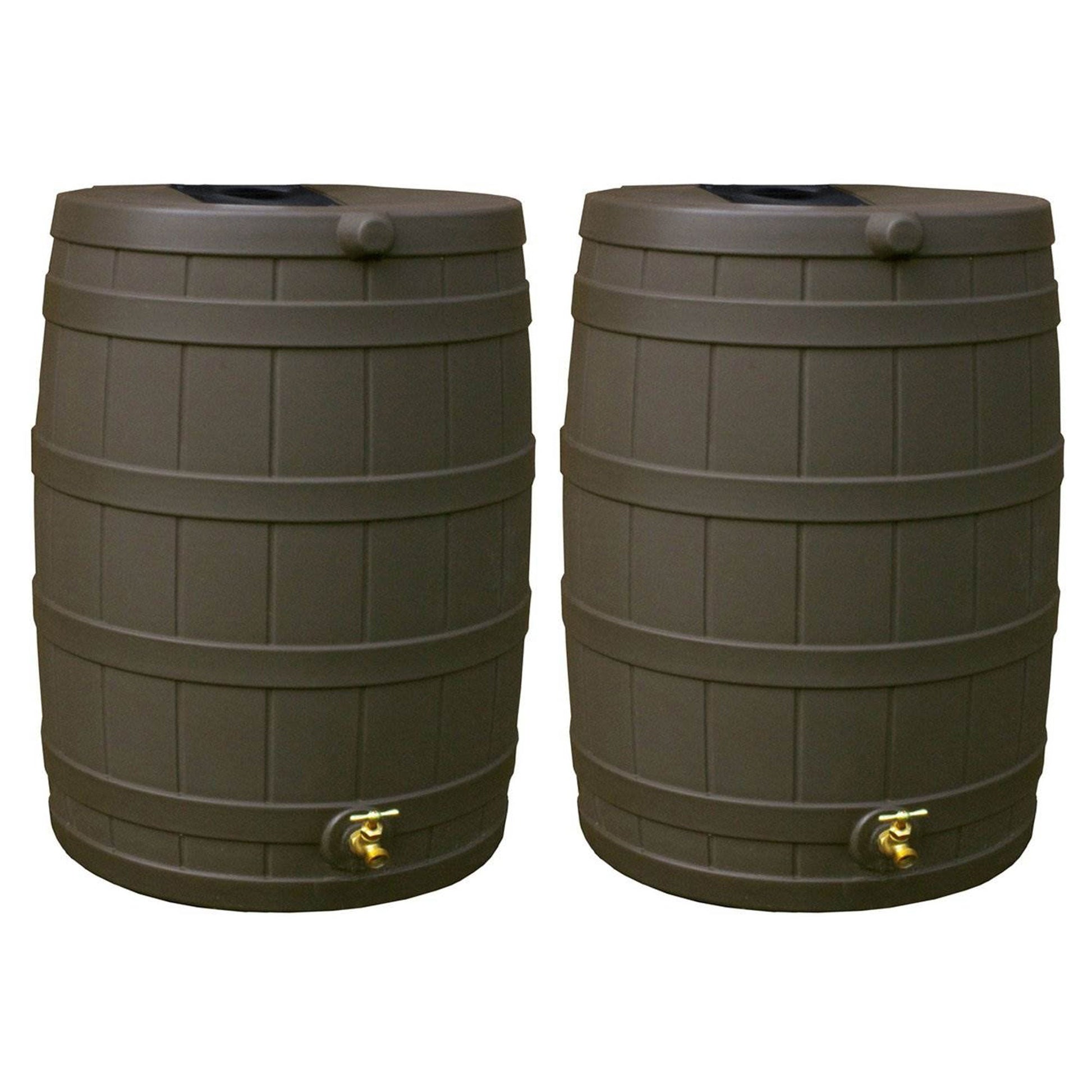 Good Ideas Rain Wizard 40 Gallon Capacity Plastic Rain Barrel Drum, Oak (2 Pack)