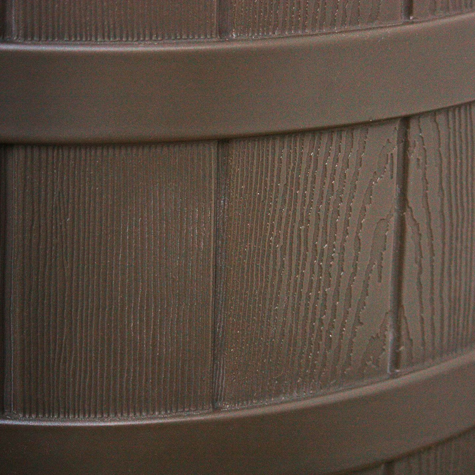 This rain barrel by Good Ideas features an attractive faux oak barrel design that naturally fits in with your landscape. The wide variety of colors allows you to match your barrel further to your home and yard without standing out. Its plastic screen mesh is newly designed to keep out bugs, animals, and debris while still being easy to remove for cleaning and maintenance, and is gentle on the skin. A front-side overflow keeps water from flooding against your outside wall. The flat-back design is one of the most convenient features as it allows your barrel to sit right up against your home so you don't have to worry about purchasing excess downspout parts. These barrels are tough. While most barrels will crack or become brittle in the winter, the rain wizard will stay strong. It is still recommended that you drain your barrels when temperatures approach the freezing point.
