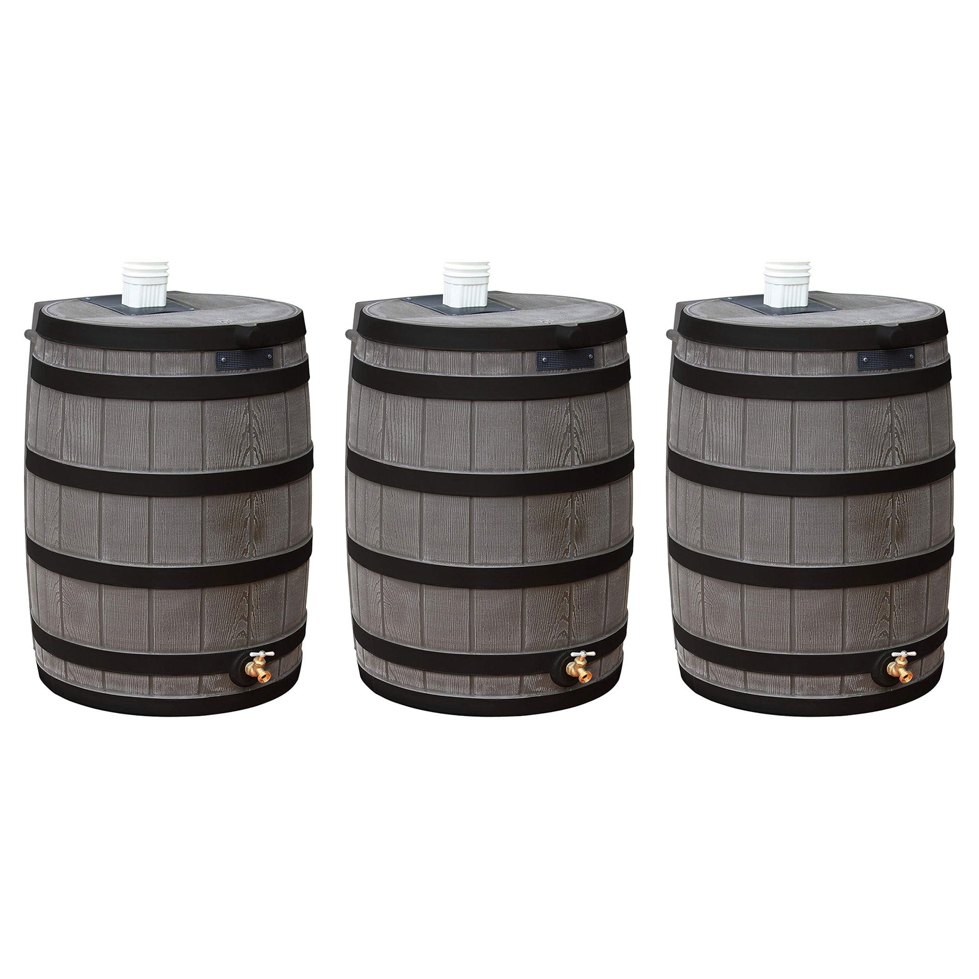 - Catch and store rainwater in this set of 3 50-gallon oak wood rain barrels with darkened ribs
