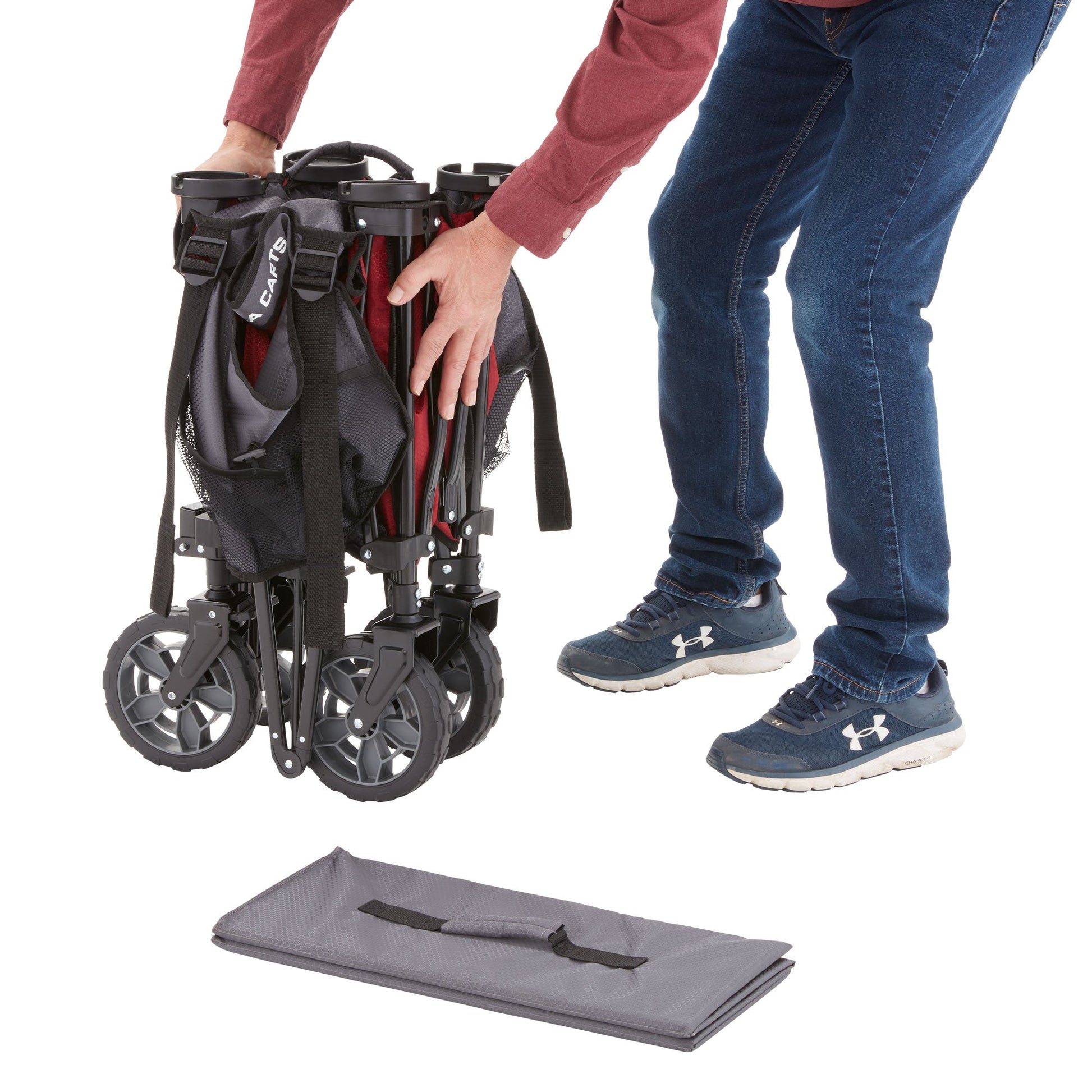 Pack up everything you need in this cart wagon with is huge bed measuring 36 inches long, 21 inches wide, and 15 inches tall. Expand the sides for umbrellas, chairs, camping gear, and additional storage, and use the handy zipper pockets on the pull cart for storing small items like your phone or keys. Enjoy the built-in cup holders for drink storage or for holding your phone so you can be hands-free. When hauling is complete, simply fold down the collapsible cart to its compact size for easy transport and storage. This all terrain wagon features a long handle that provides comfort when pulling and reduces fatigue in the process. Plus, the wagon includes flat-free, 7-inch tires with PVC treads that give you the versatility of a beach cart, garden cart, or a trusted Gorilla cart for navigating gravel or grass. Along with upgraded steering and brakes, the maneuverability system on this wagon is second to none. Constructed from a high-quality sport fabric, the foldable cart is designed with a soft, washable interior for easy cleaning and maintenance.