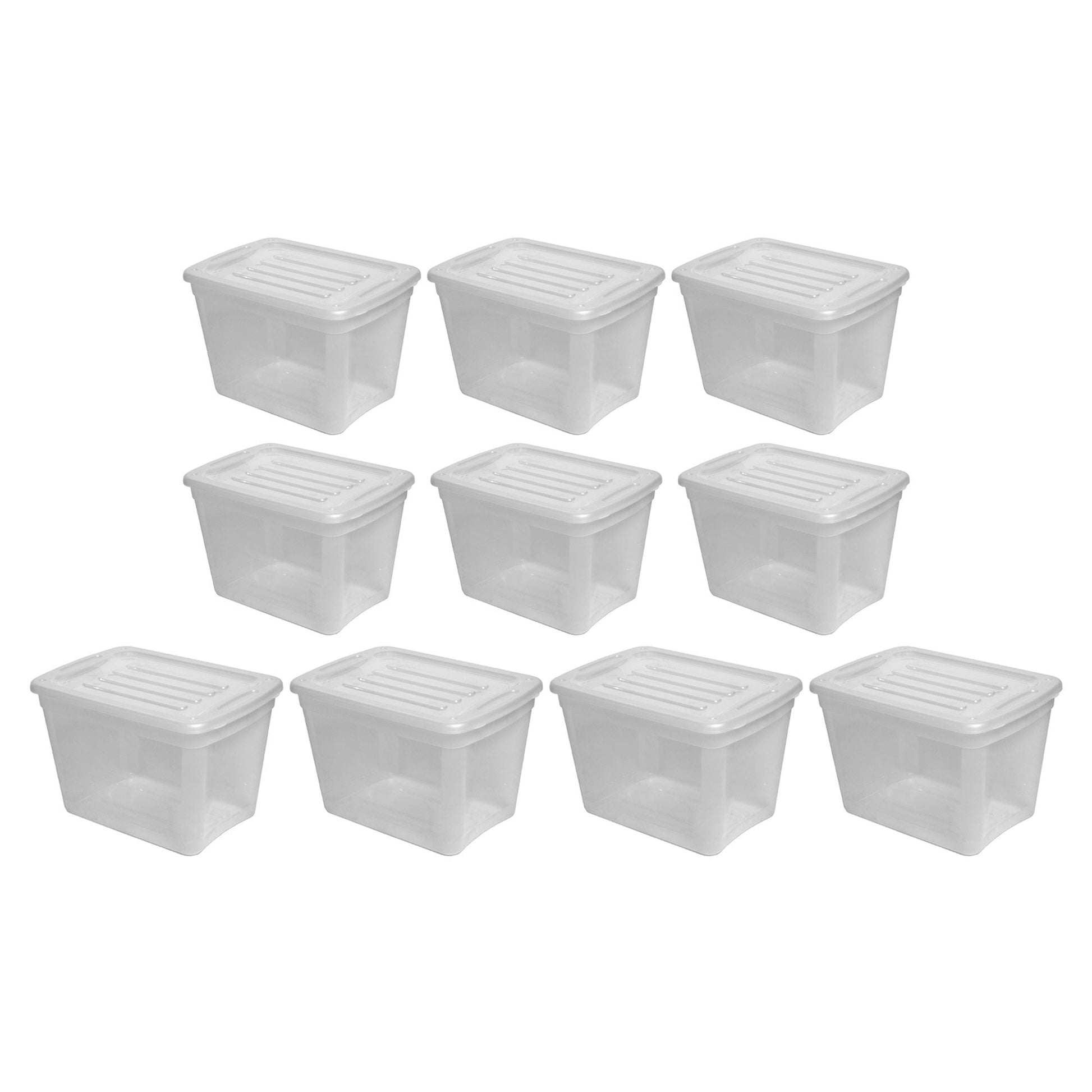 - Pack of (10) 10-gallon plastic bins helps you keep clutter contained and organized, great for your bathroom, closet, garage, classroom, office, and more