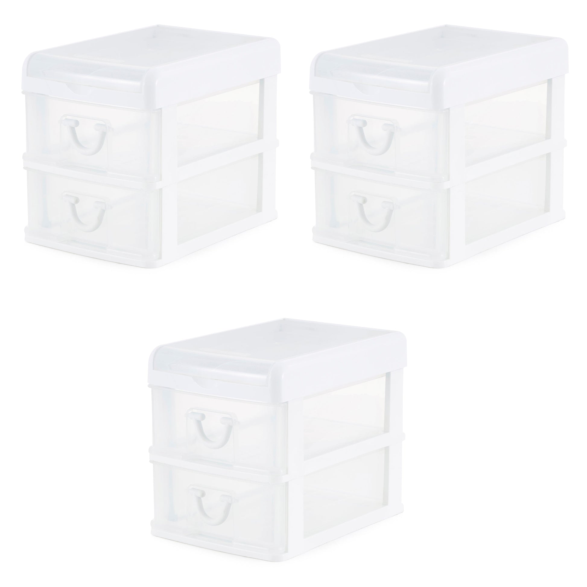 This desktop storage solution features 2 smooth-gliding drawers with loop handles for easy access to your items inside and a clear design for easily viewing and finding your items. With 2 drawers, you can use this plastic drawer unit as a makeup organizer, nail polish organizer, for small kitchen accessories, or for storing office desk accessories like pens and paperclips. The storage possibilities are endless! Plus, the handy flip-top lid provides additional storage space and quick access for your frequently used items.