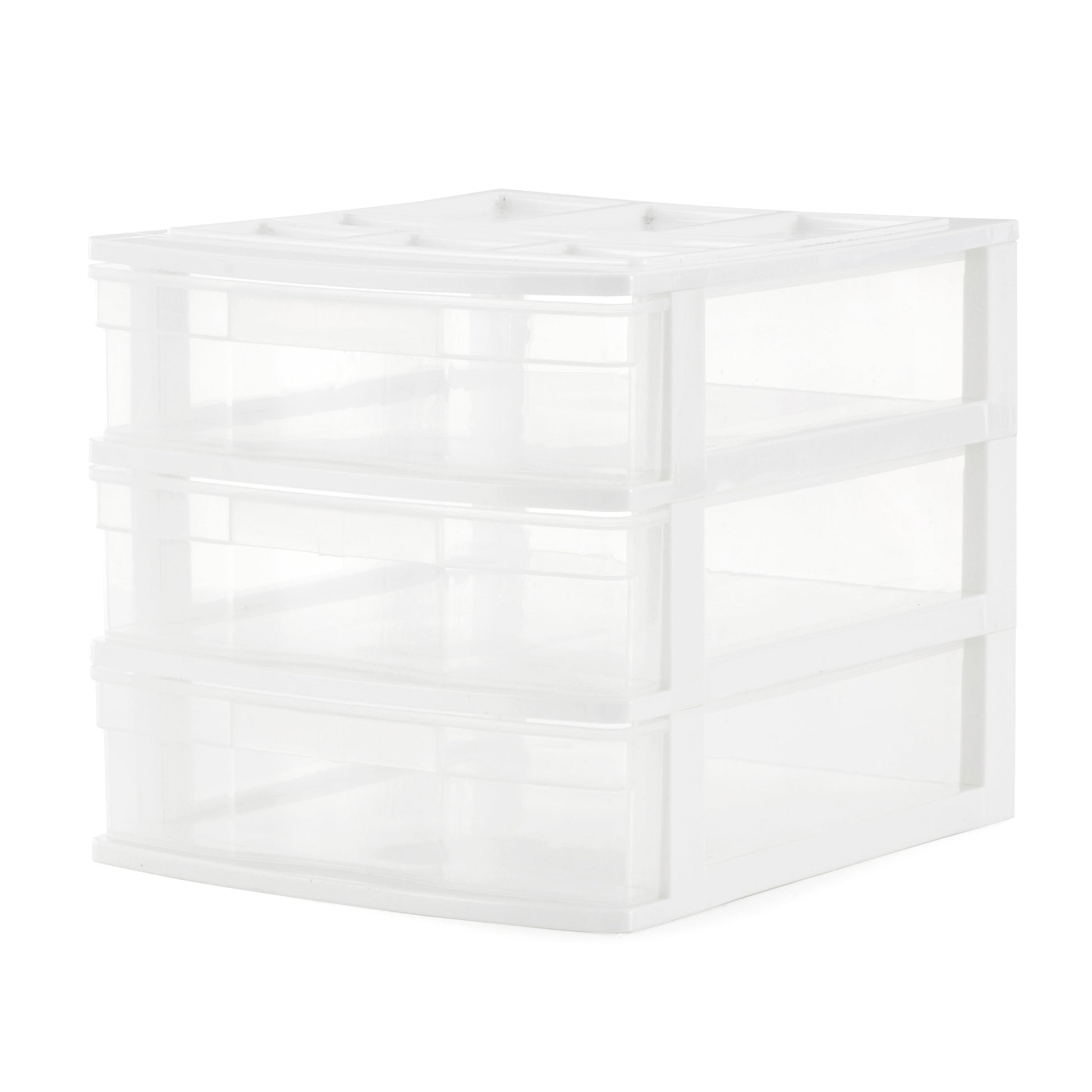 This desktop storage solution features 3 smooth-gliding drawers with handles for easy access to your items inside and a clear design for easily viewing and finding your items. With 3 drawers, you can use this plastic drawer unit as a makeup organizer, nail polish organizer, for small kitchen accessories, or for storing office desk accessories like pens and paperclips. The storage possibilities are endless! The handy 8.5 by 11-inch drawer provides convenience for your standard paper-sized supplies. Plus, the organizer lid keeps smaller items neatly in place helping to keep your desk clear of scattered items