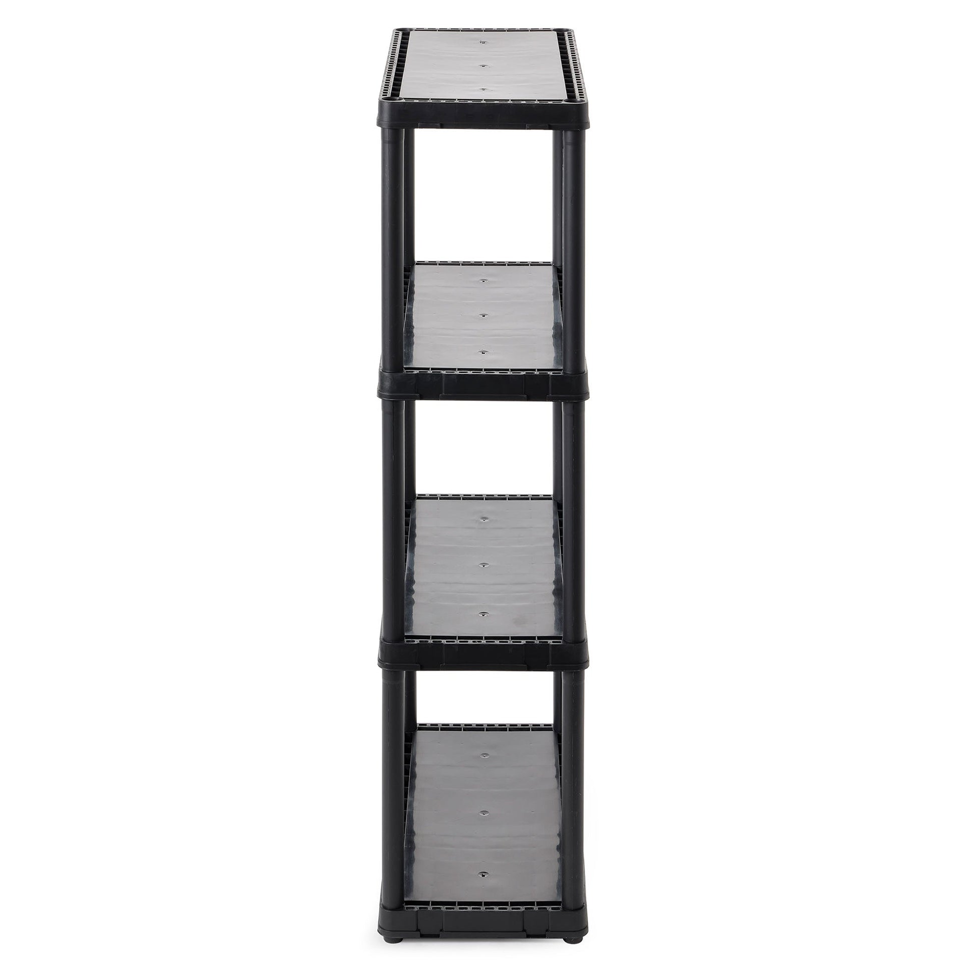 When you're short on closet space or need to organize the pantry, count on these 4-Tier Fixed Height Storage Shelving from Gracious Living to help you transform clutter into clean. These plastic storage shelves function as garage storage, a shelf organizer to display shoes, or even as a bookcase, allowing you to easily organize and store various items.