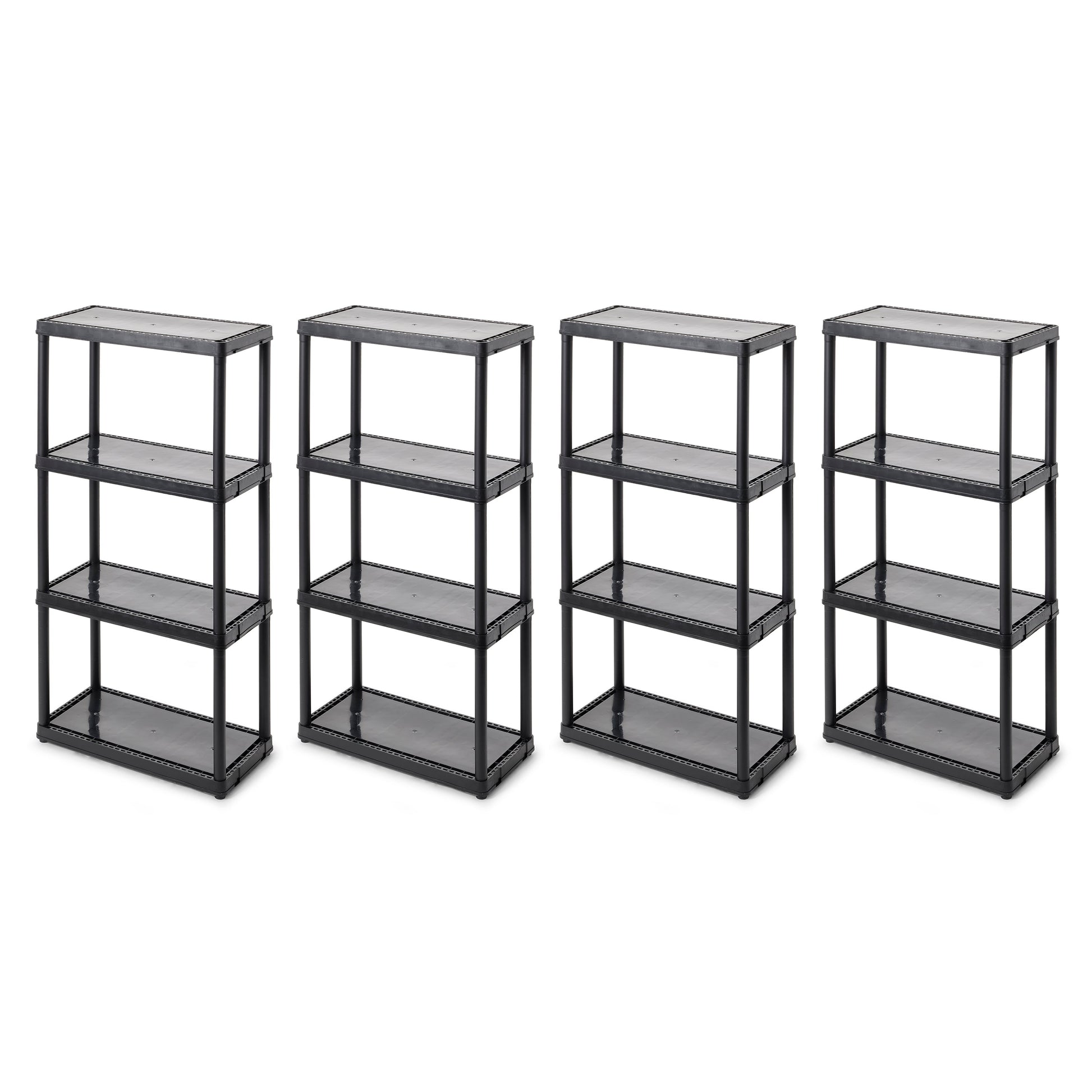 Gracious Living 4 Shelf Fixed Height Light Duty Storage Unit, Black (4 Pack)
