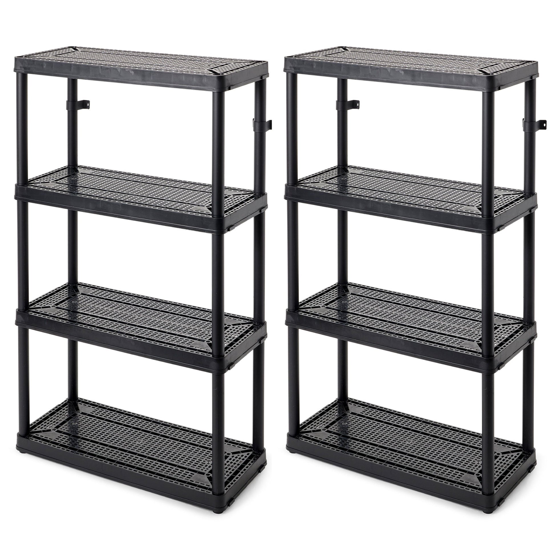 When you're short on closet space or need to declutter the pantry, utilize the 4 Shelf Fixed Height Organizing Storage Unit from Gracious Living, 2 pack. These plastic storage shelves can function as your garage storage or shelf organizer, allowing you to easily organize and store various items.