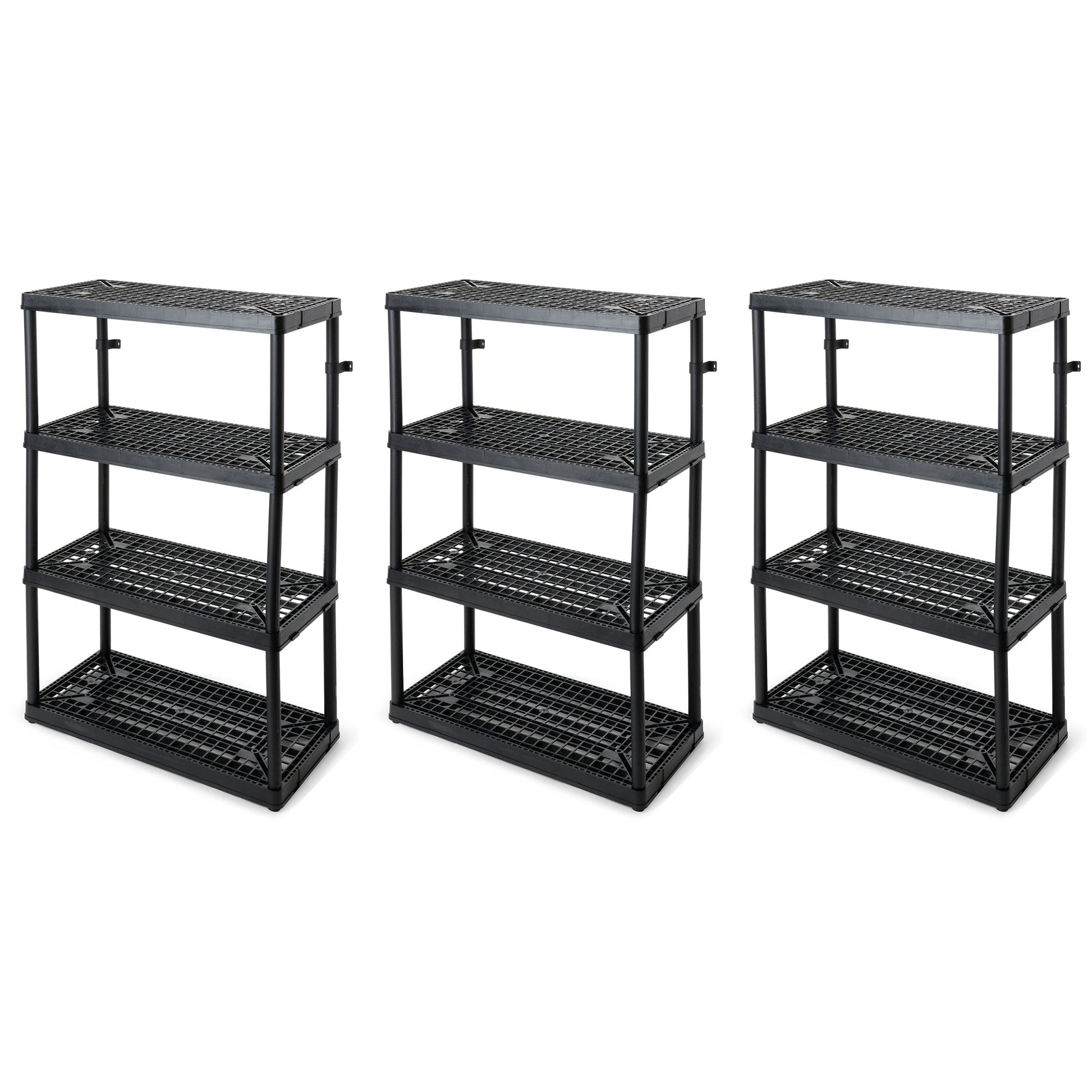 Gracious Living 4 Shelf Fixed Height Ventilated Storage Unit, Black, 3 Pack