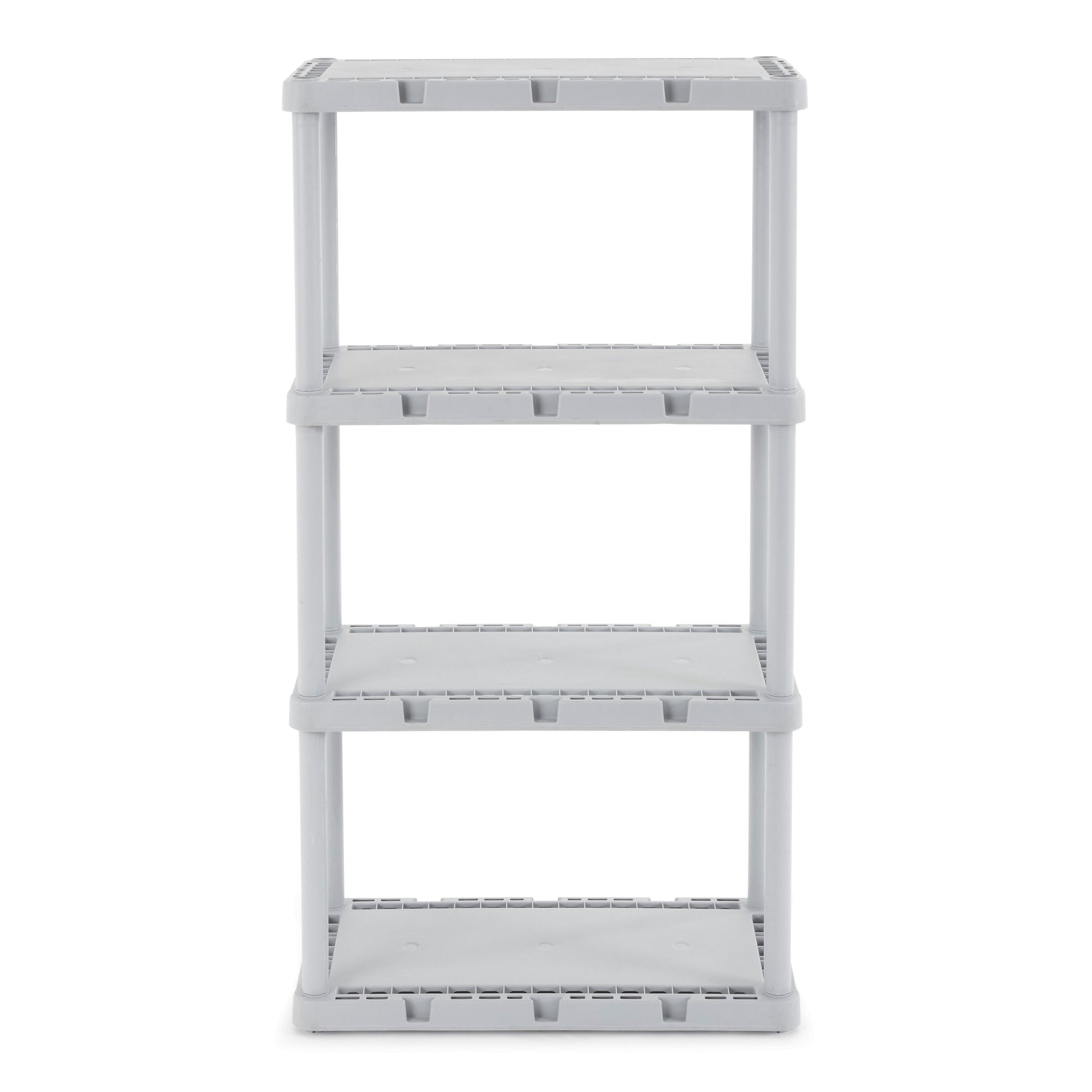 With its simple, no-tool setup, lightweight body, and grey coloring, you can easily make this storage unit work in any room of the house. Easily snap all the included parts of this multi-purpose unit together for a simple, no-stress installation process. Plus, with the Knect-A-Shelf feature, you can interconnect multiple units from any side for added storage space (additional units sold separately). Constructed of durable and lightweight materials, the storage possibilities are endless. Each shelf is solid and made to support up to 55 pounds and up to 220 pounds overall, allowing you to organize seasonal clothing items, home decor, toys, supply crafts, and other tools or accessories. Make sure that you distribute the weight evenly on the fixed shelves. This organizing shelf offers an ideal height for both kids and adults and is a great addition to any home or office space.
