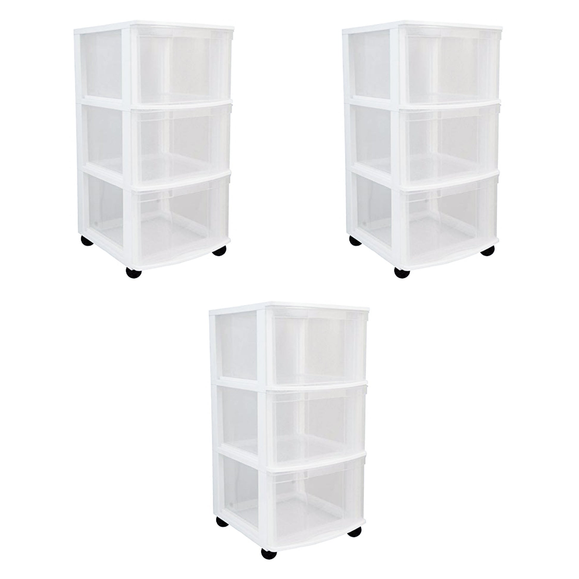 The 3-pack of Gracious Living Classic 3-Drawer Storage Carts offers versatile storage solutions for your home, office, or garage. With its durable and heavy-duty construction, this multi-purpose 3-drawer chest is perfect for organizing a wide range of items. The clear drawers provide easy identification of your stored items, and the easy slide design makes it seamless to open and close the plastic dresser.