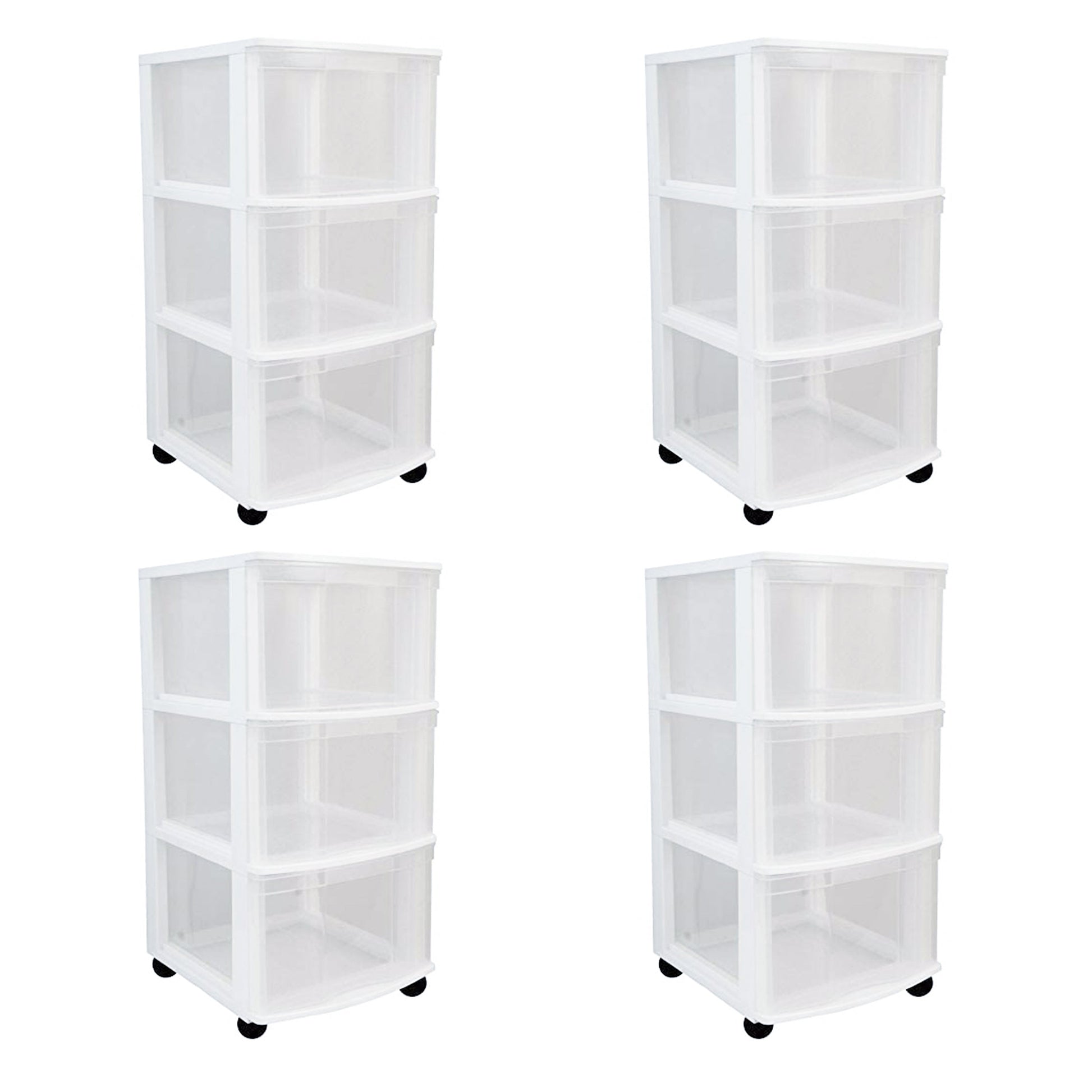 The 4-pack of Gracious Living Classic 3-Drawer Storage Carts offers versatile storage solutions for your home, office, or garage. With its durable and heavy-duty construction, this multi-purpose 3-drawer chest is perfect for organizing a wide range of items. The clear drawers provide easy identification of your stored items, and the easy slide design makes it seamless to open and close the plastic dresser.