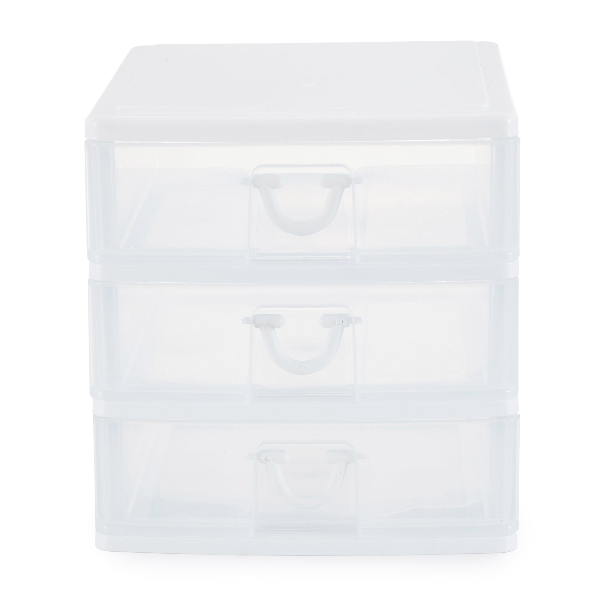 The deluxe desktop storage solution features 3 smooth-gliding drawers with loop handles for easy access to your items inside and a clear design for easily viewing and finding your items. With 3 drawers, you can use this plastic drawer unit as a makeup organizer, nail polish organizer, for small kitchen accessories, or for storing office desk accessories like pens and paperclips. The storage possibilities are endless! Plus, the handy 8.5 by 11-inch drawer provides convenience for your standard paper-sized supplies.