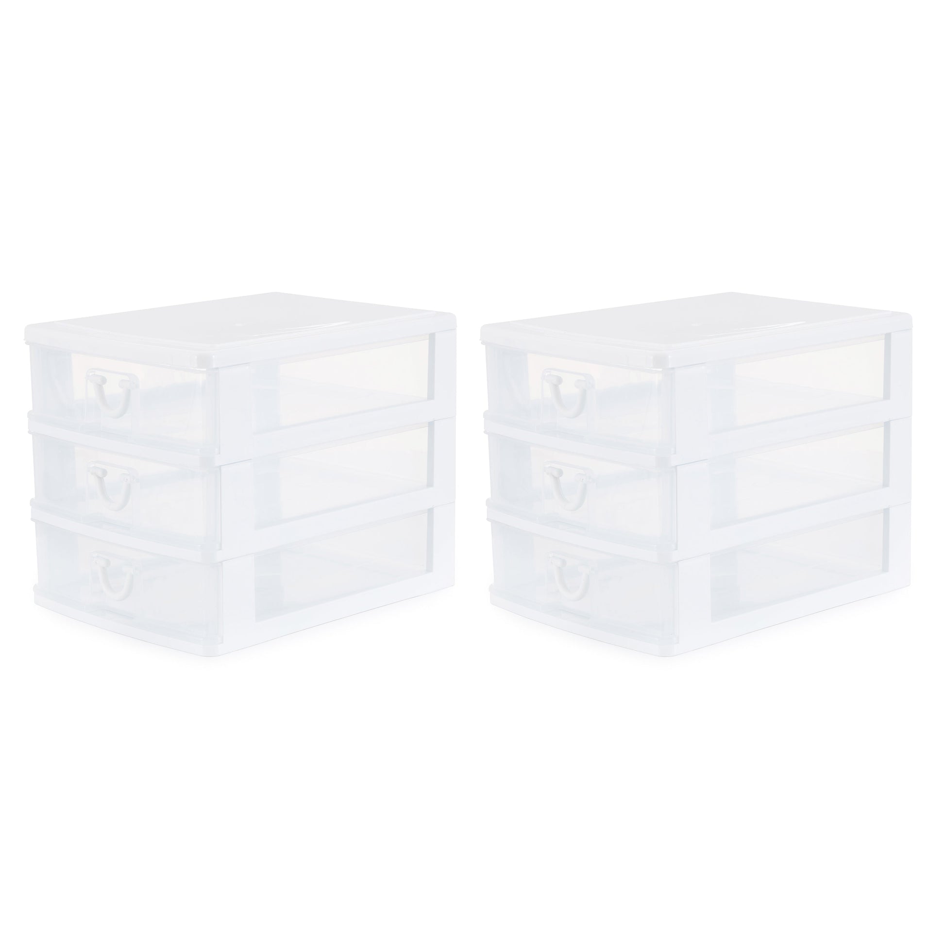 - Set of 2 deluxe plastic drawer storage units provides a simple way to keep desk accessories organized and contained, keeping your desktop or countertop clear