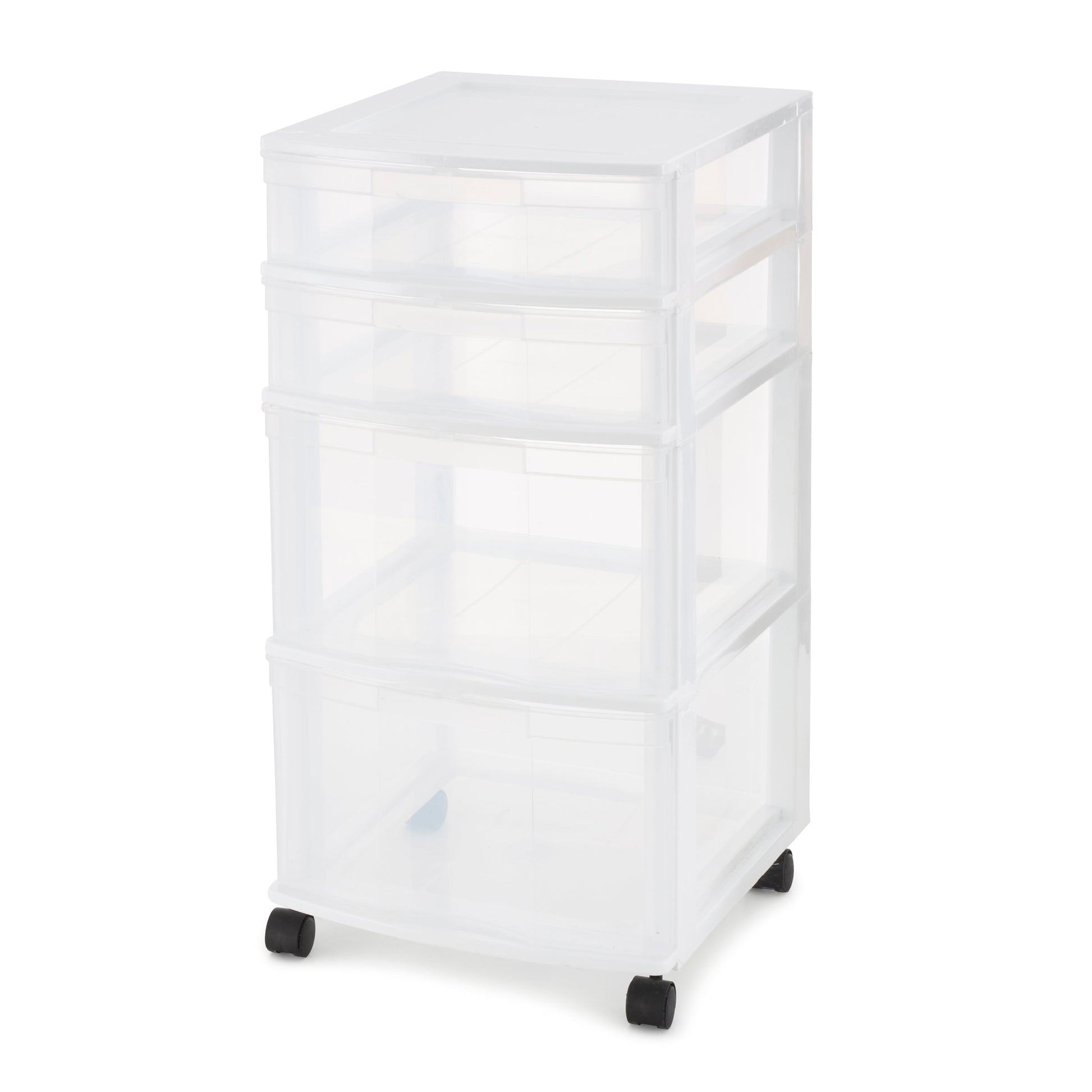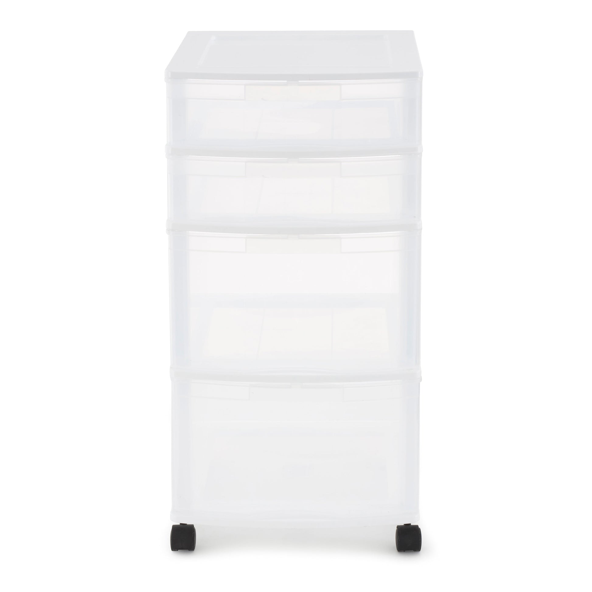 Keep your items organized in one spot with the Resin Clear 4 Drawer Storage Chest System with Casters from Gracious Living.