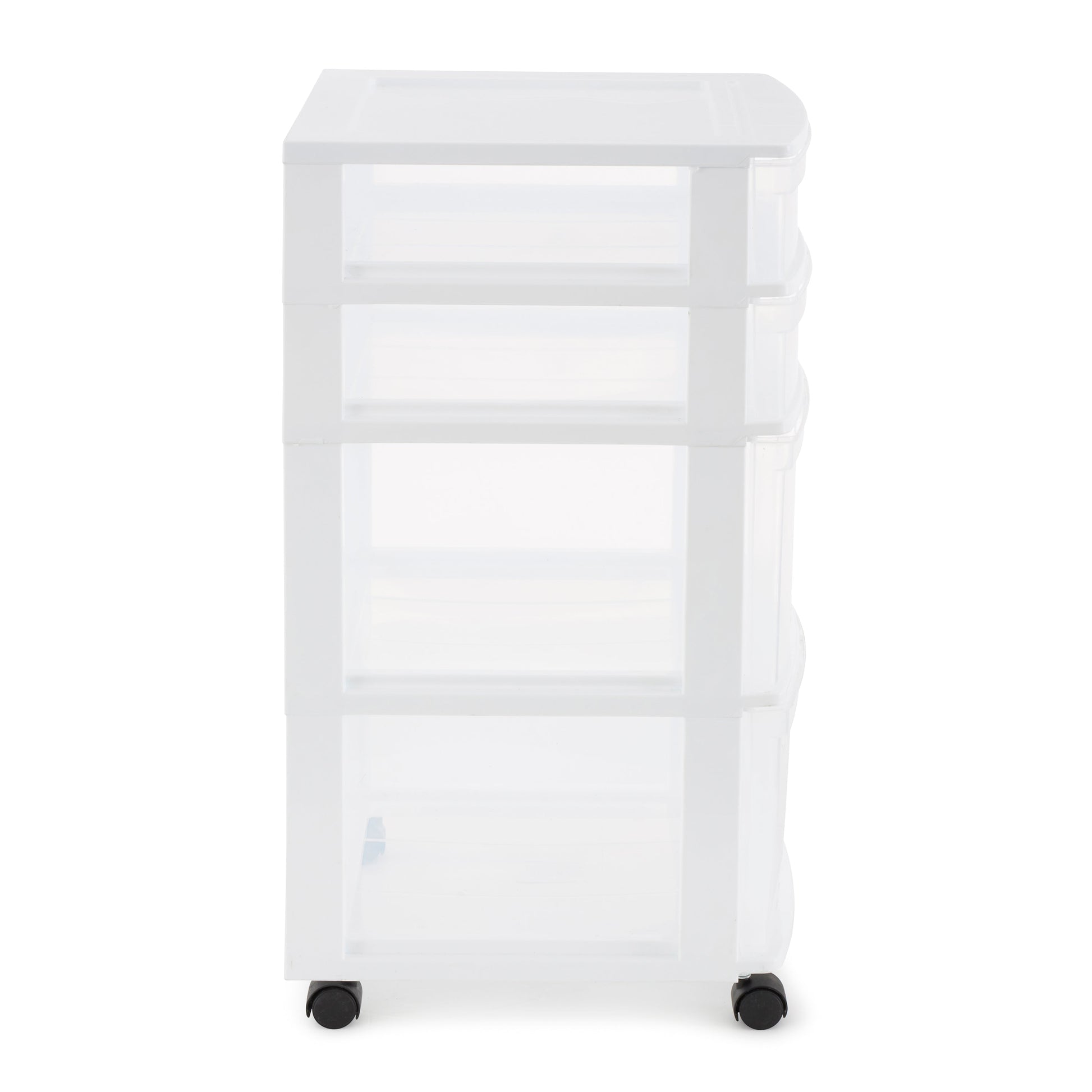 Gracious Living Resin Clear 4 Drawer Storage Chest System with Casters, White