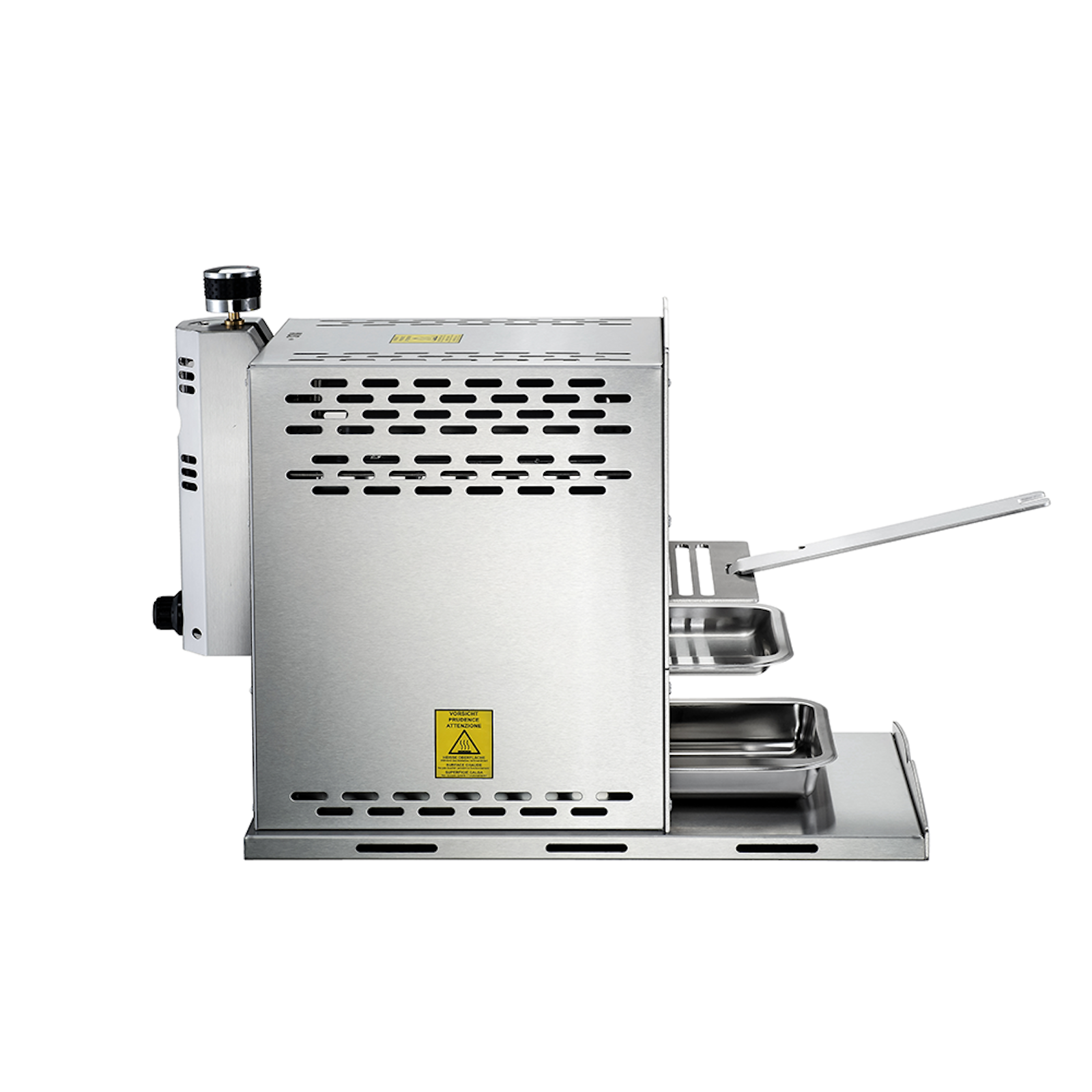 - 2 grease pans are included for easy clean-up