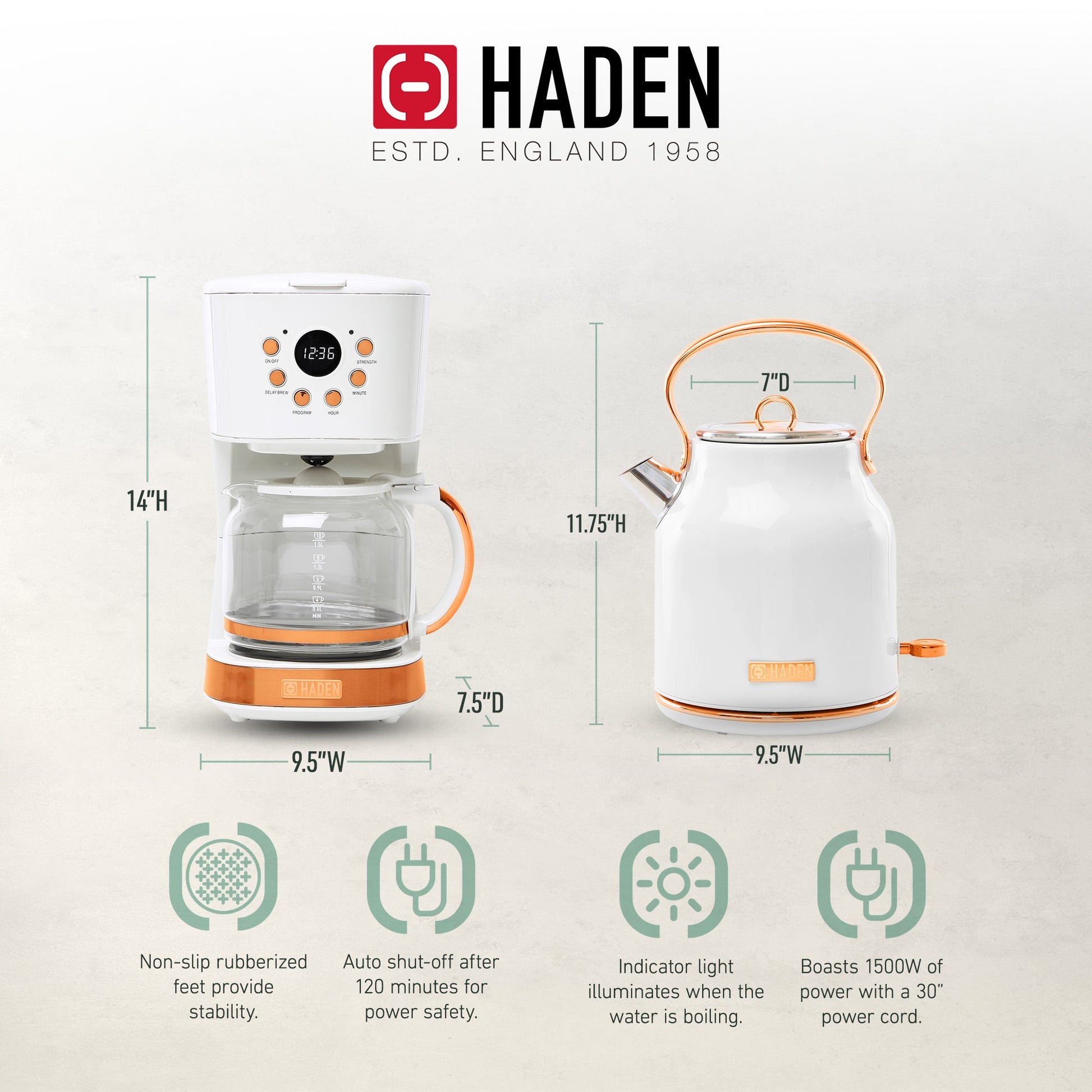 - Elevate your kitchen with this Haden coffee maker and Heritage kettle where classic style meets contemporary living