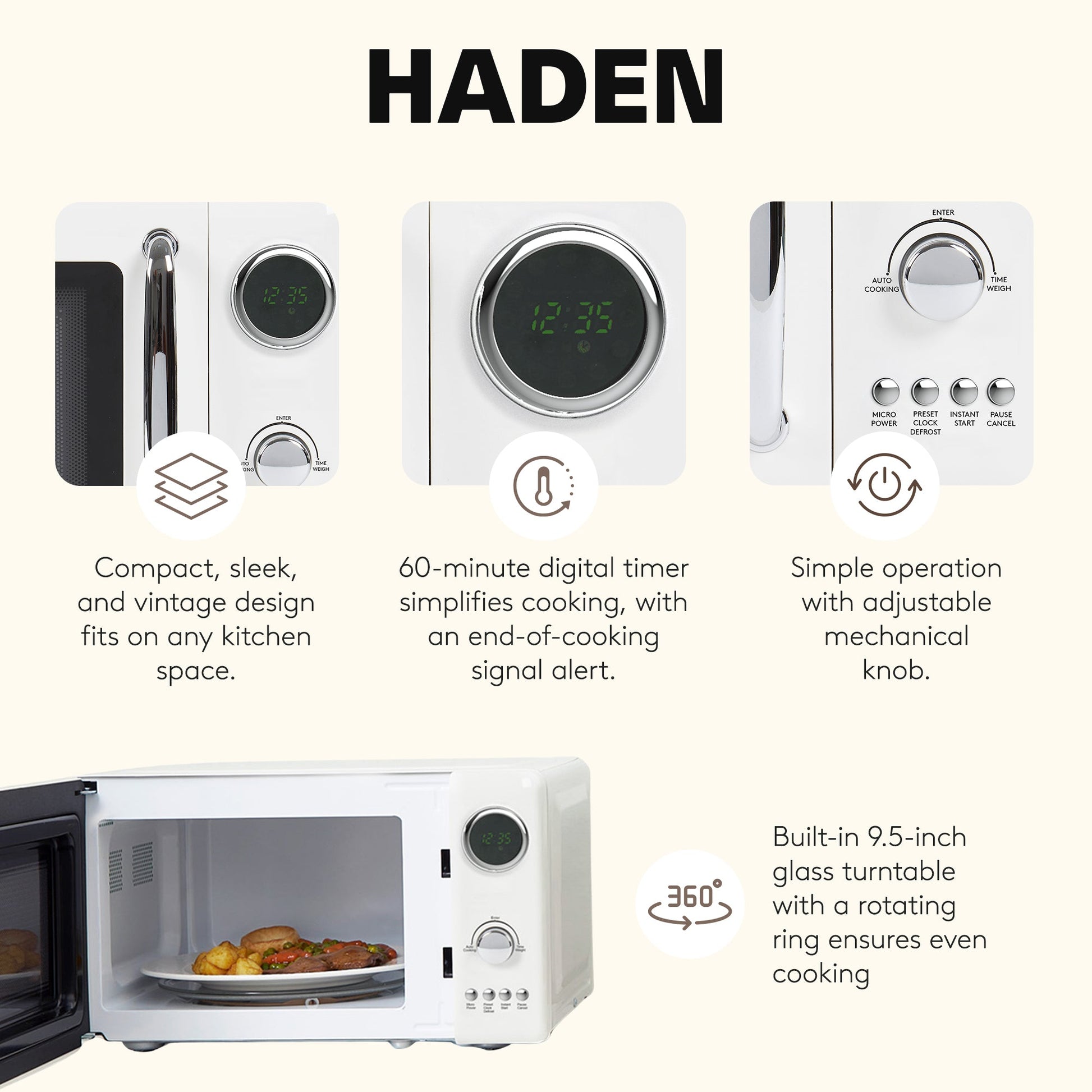 Haden 700 Watt 0.7 Cubic Foot Microwave Oven with Digital Controls, Ivory/Chrome