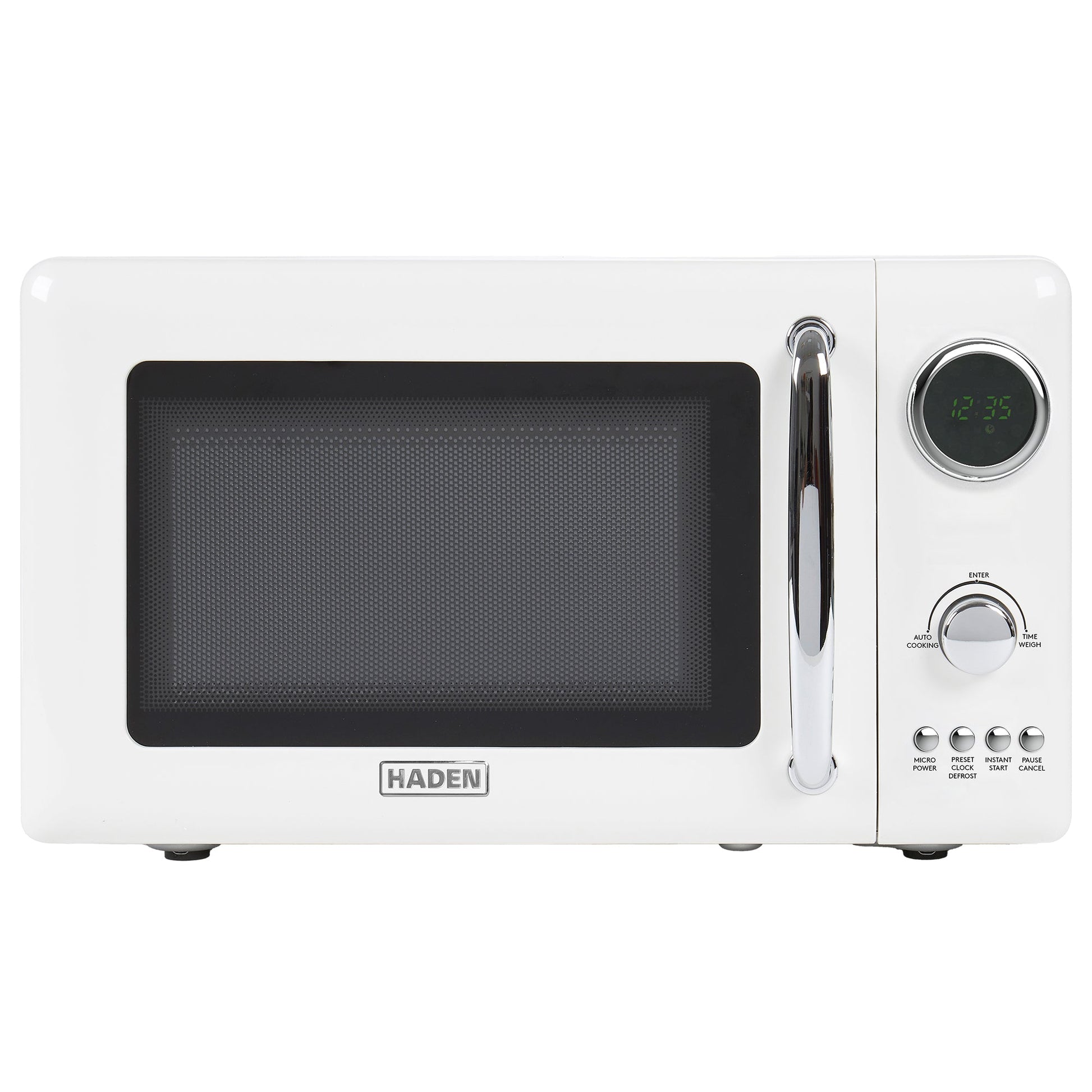Create a classic and sophisticated look in your kitchen with the Haden Microwave Oven. With a sleek, sophisticated design, this microwave complements any countertop, adding a touch of elegance to your kitchen. Boasting a 0.7-cubic-foot capacity and 700-watt power, it efficiently handles your cooking needs. The digital controls offer easy operation, while the defrost and Instant Start functions simplify meal prep.