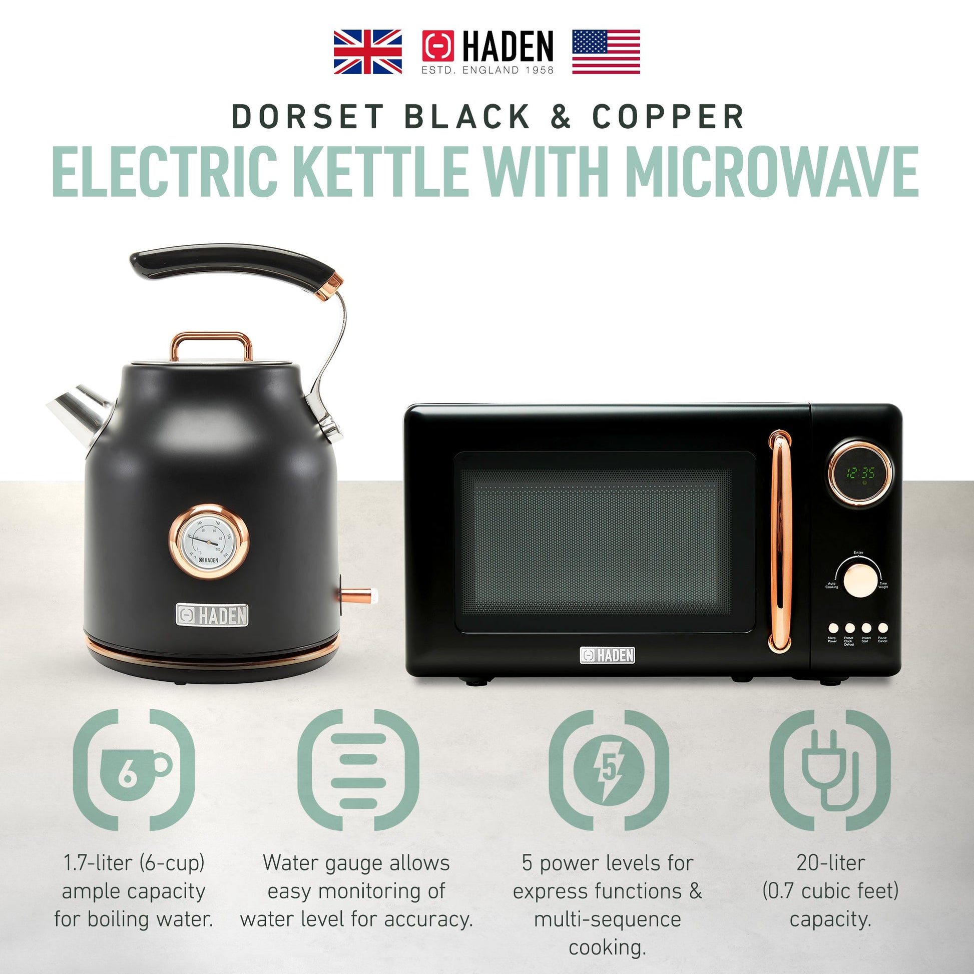 Haden 700W Countertop Microwave & Dorset 1.7L Electric Kettle, Black & Copper