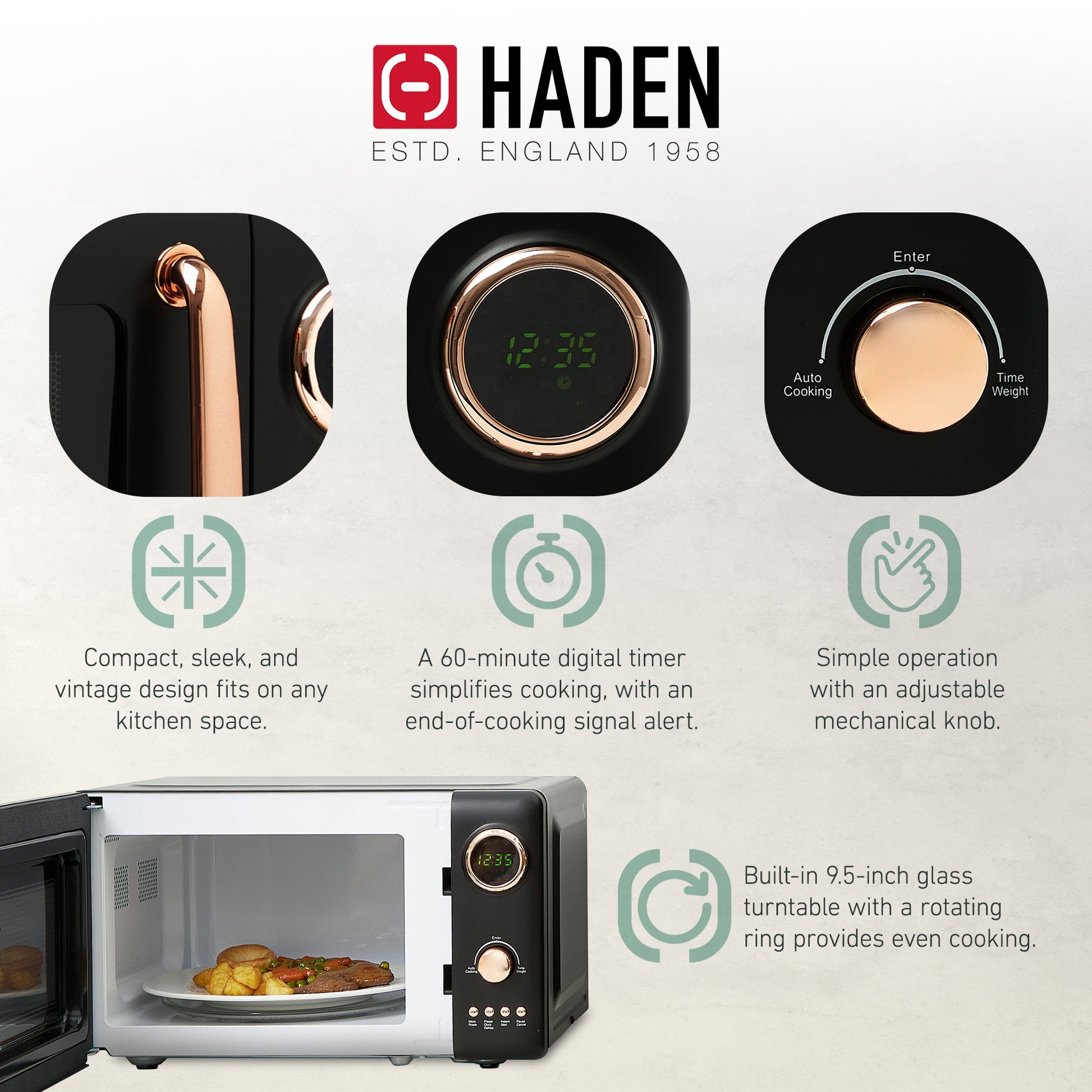 - Perfect for any kitchen, the HADEN microwave simple design is easy to use and includes non-slip feet for stability