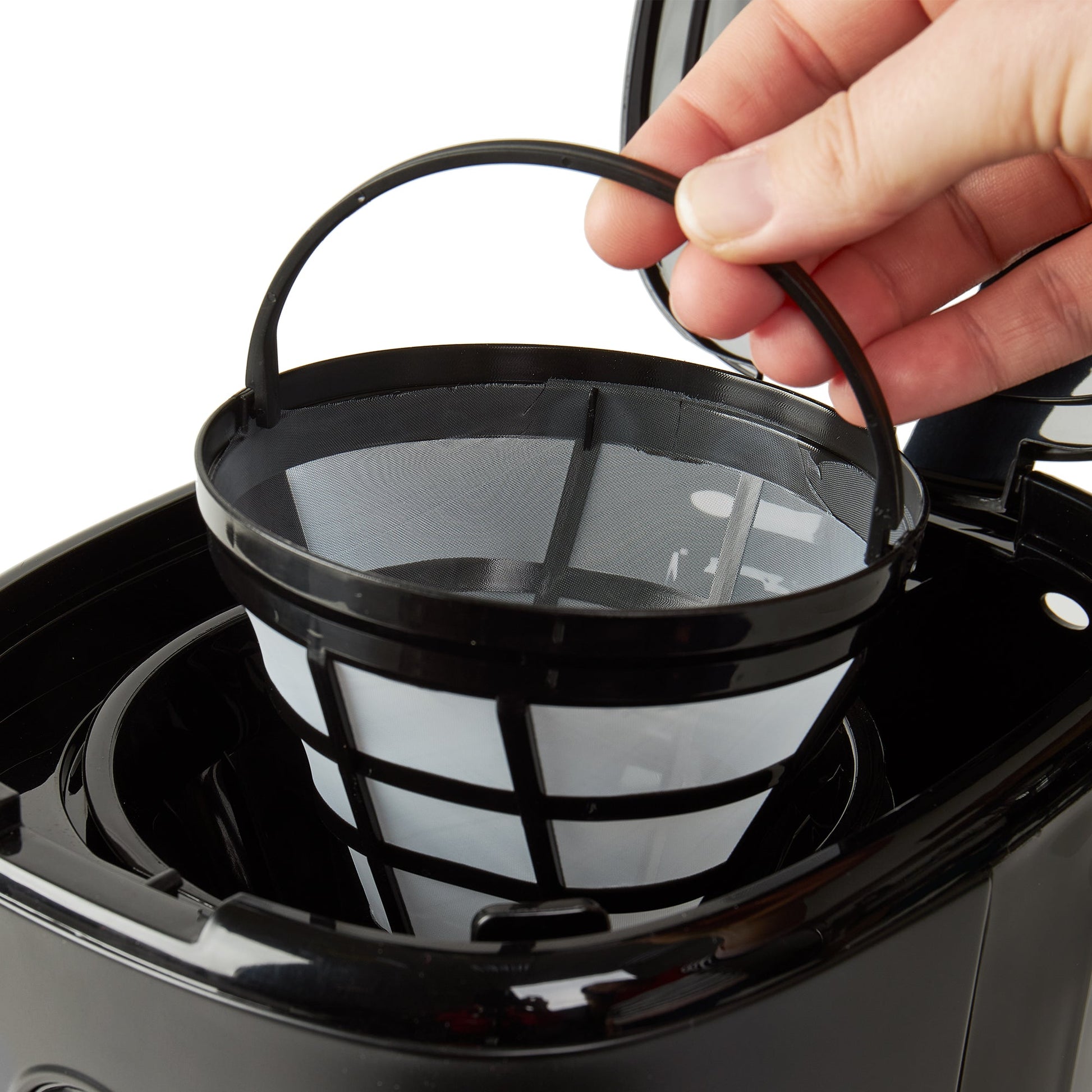 Pour your hot coffee and serve your guests with ease using the glass coffee pot’s large handle, while the lid helps to control the flow. For ease of maintenance, the machine’s removable water filter can be washed and reused.