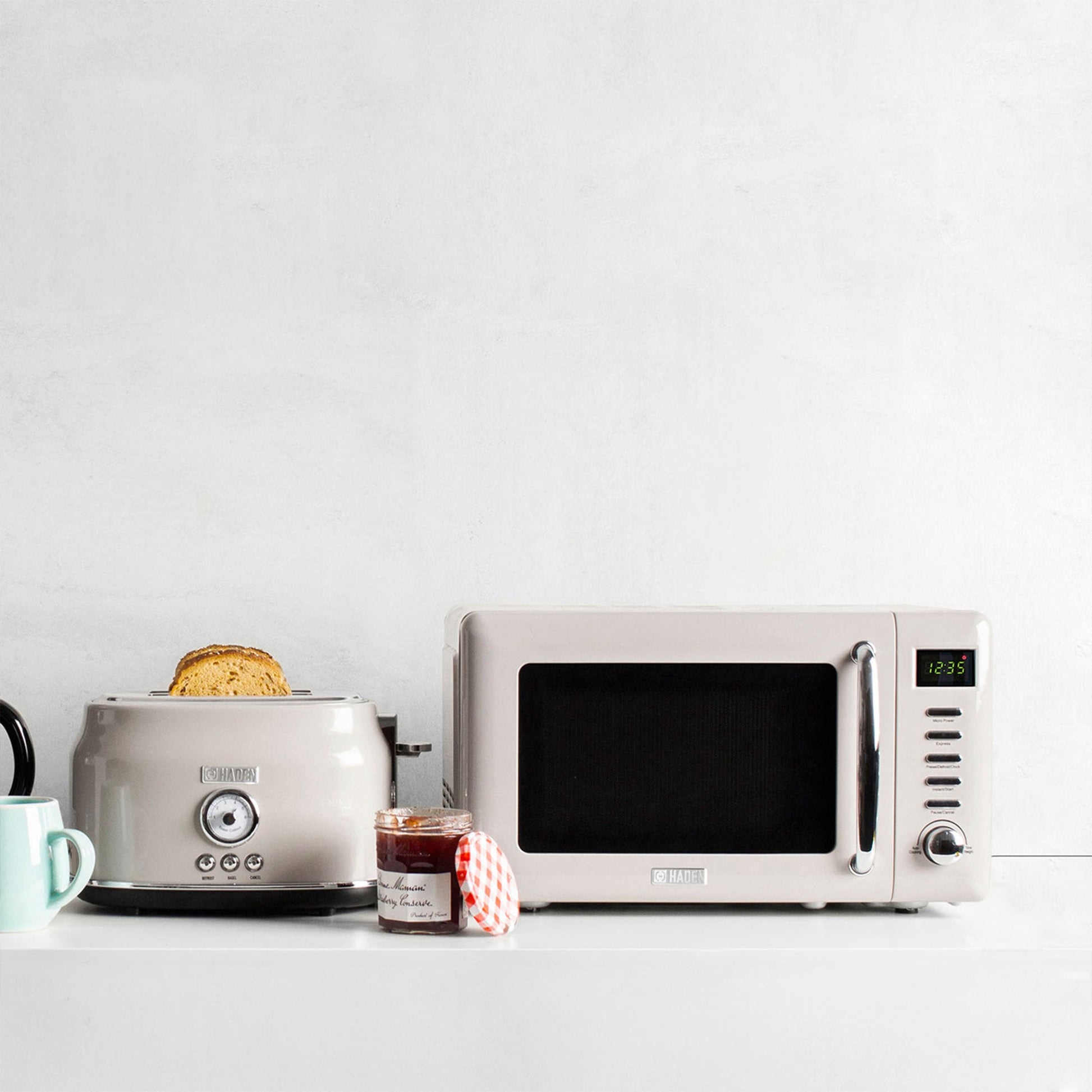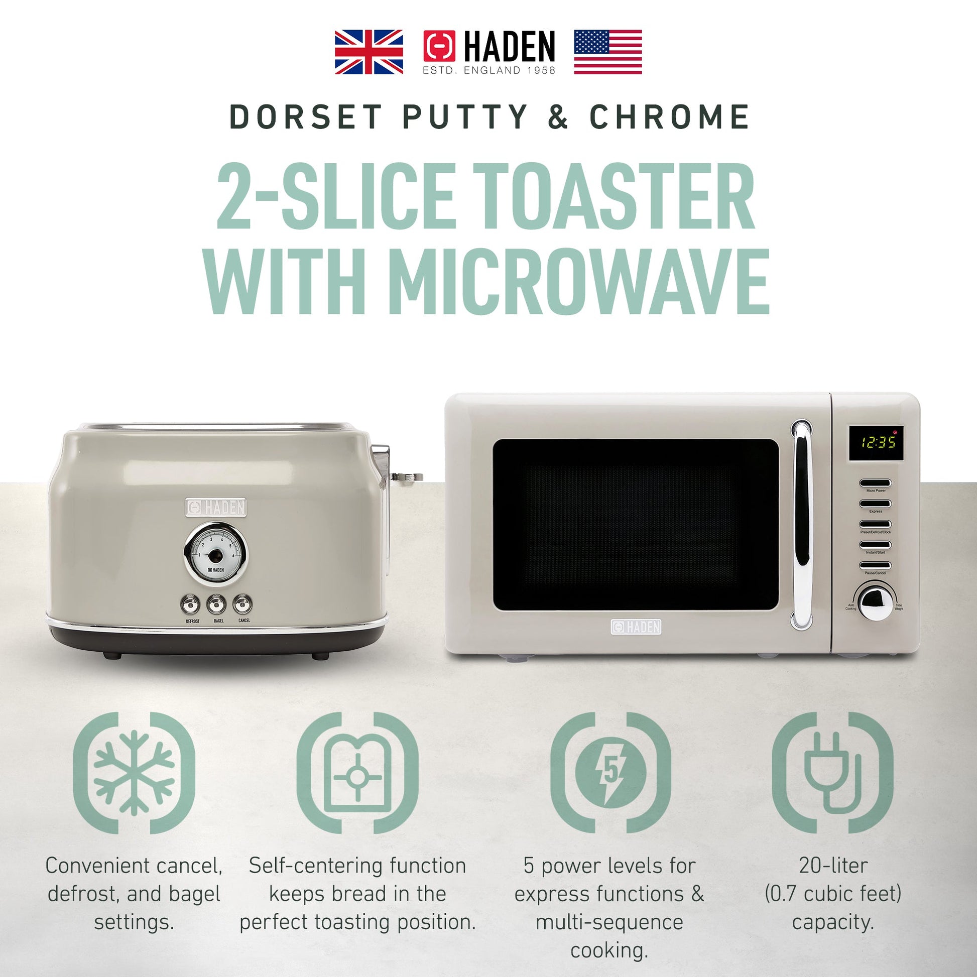 Haden Countertop Microwave & Dorset 2 Slice Wide Slot Toaster, Putty & Chrome