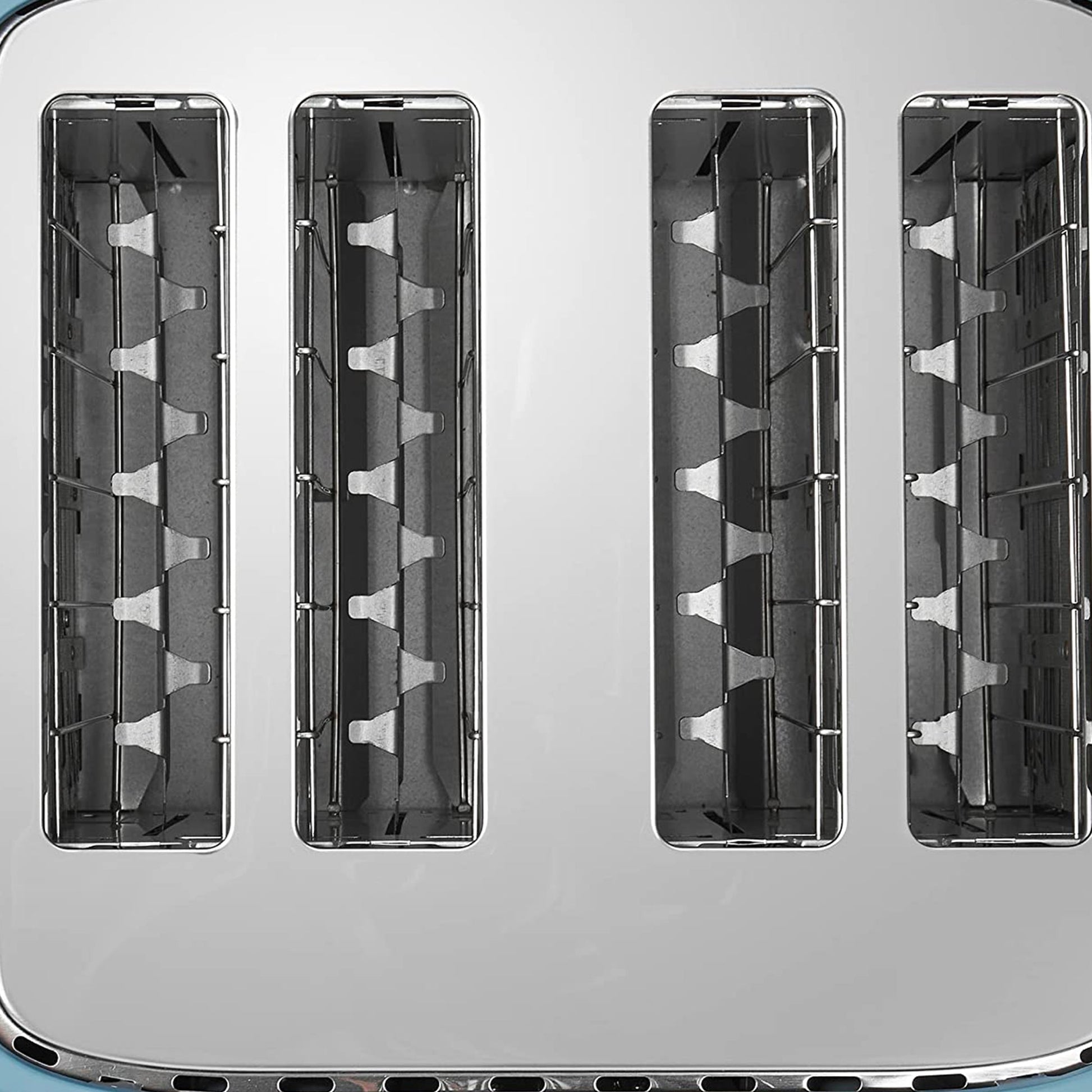 - Retro 4-slice stainless steel toaster with extra-wide slots is an ideal appliance for thick bread slices and bagels