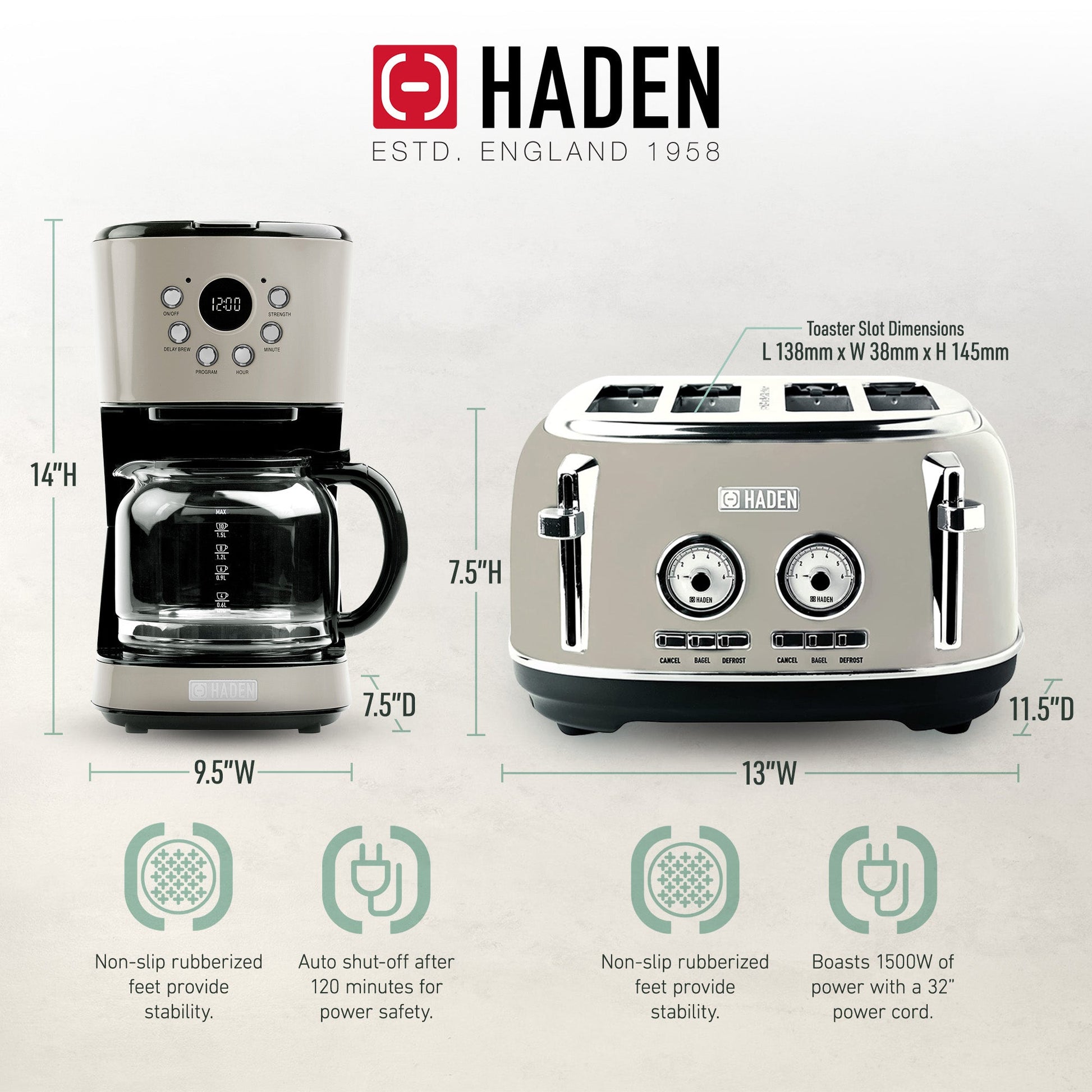 - Elevate your kitchen with this Dorset toaster and Haden coffee maker, where classic style meets contemporary living