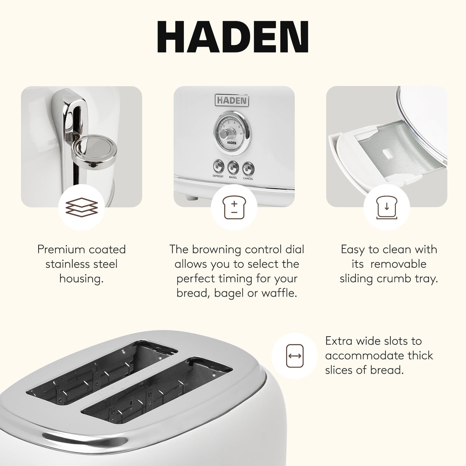 Haden Dorset 2 Slice Extra Wide Slot Stainless Steel Toaster with Tray, Ivory
