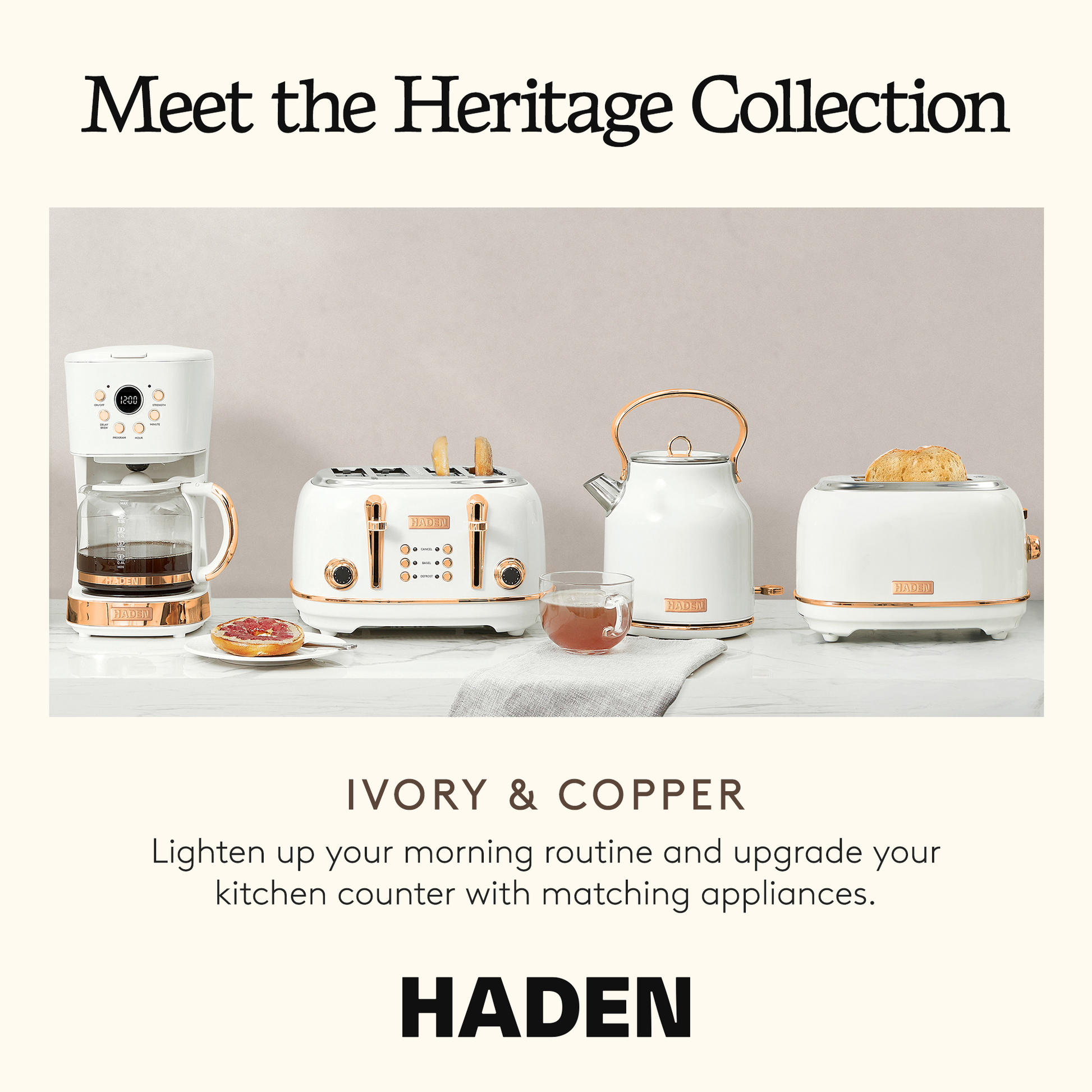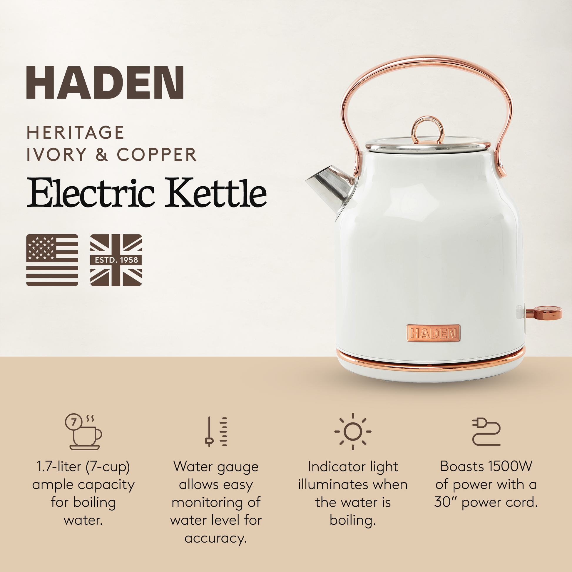 Haden Heritage 1.7 Liter Stainless Steel Electric Water Kettle, Ivory & Copper