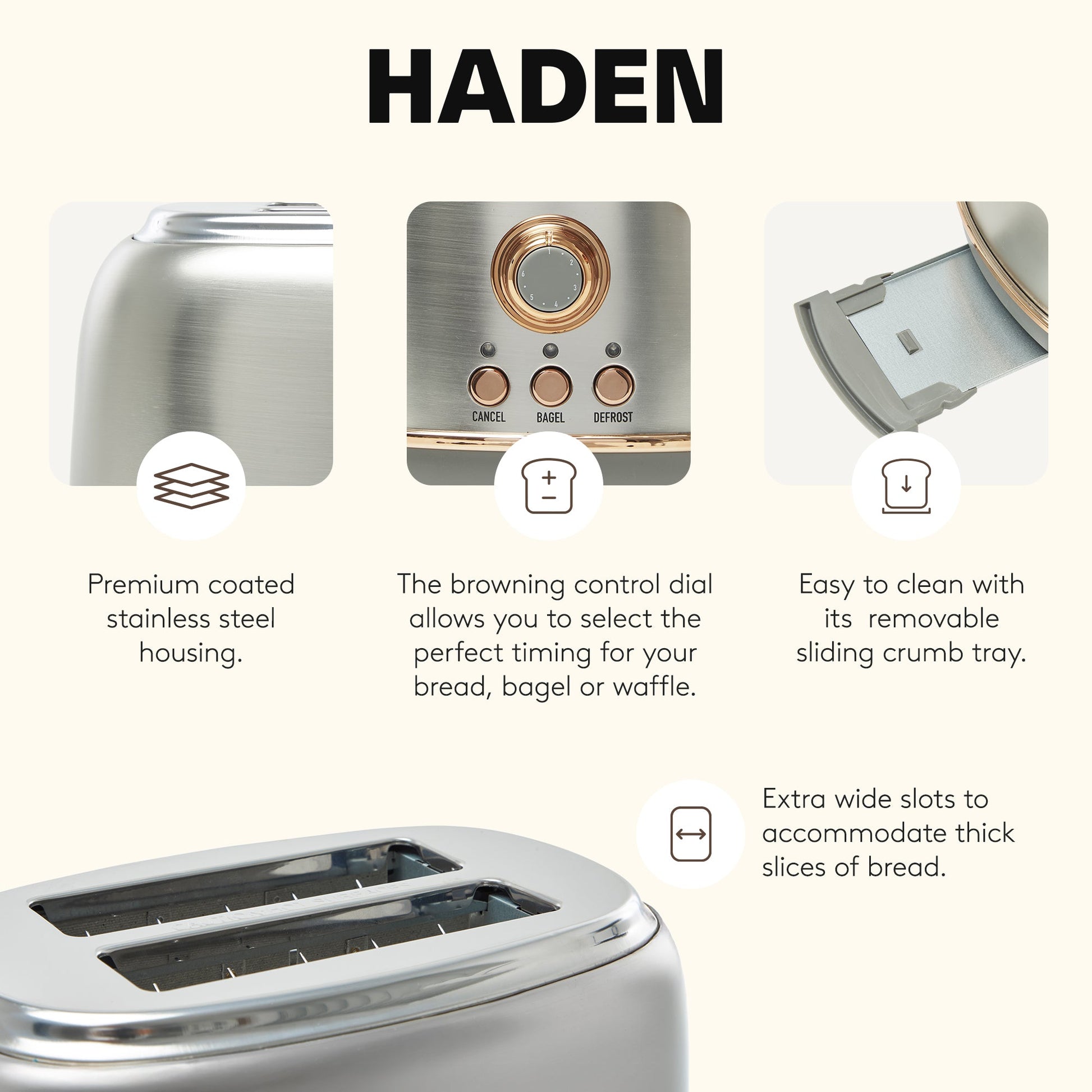 Haden Heritage 2 Slice Wide Slot Stainless Steel Toaster, Steel & Copper