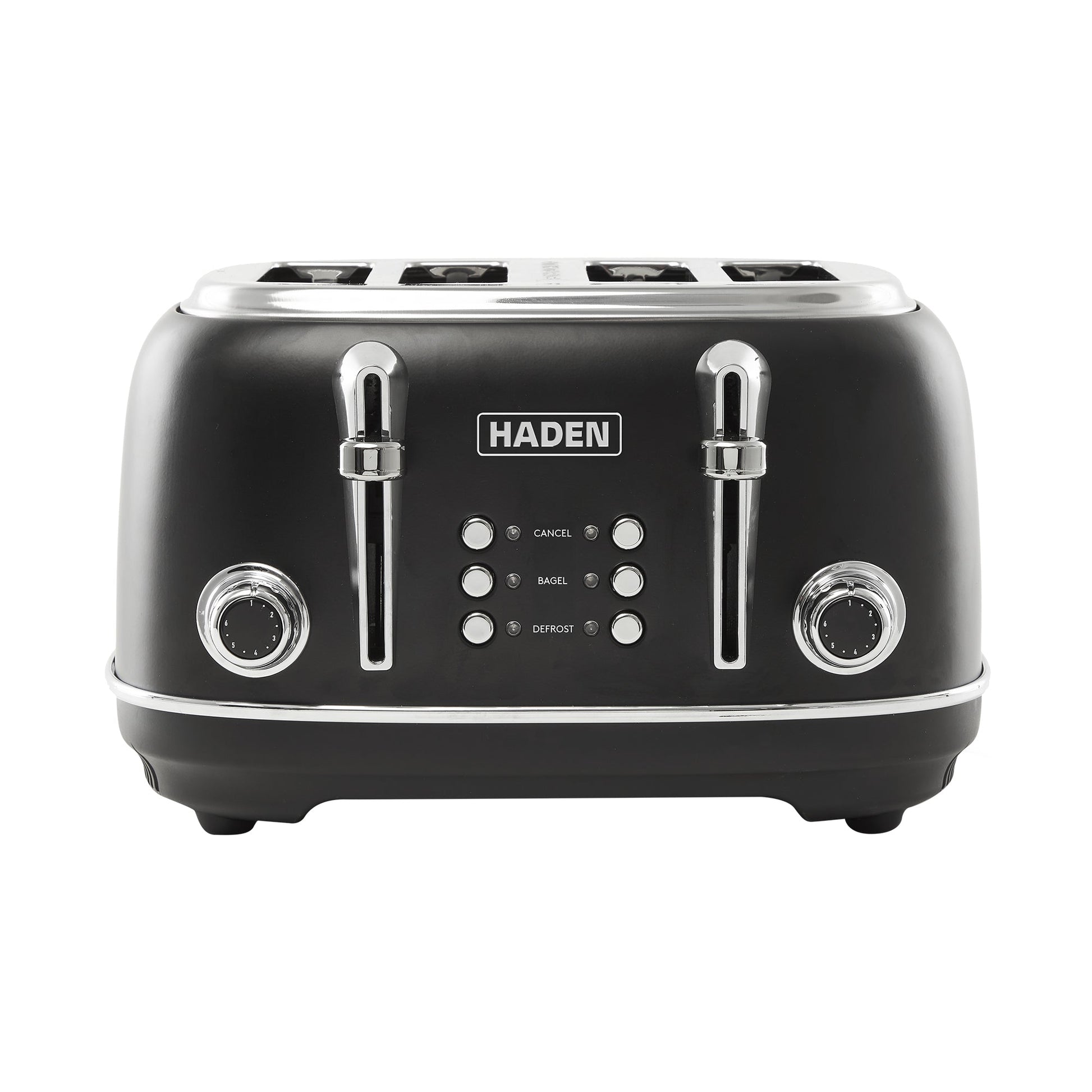 Haden Heritage 4 Slice Wide Slot Stainless Steel Toaster, Black & Chrome