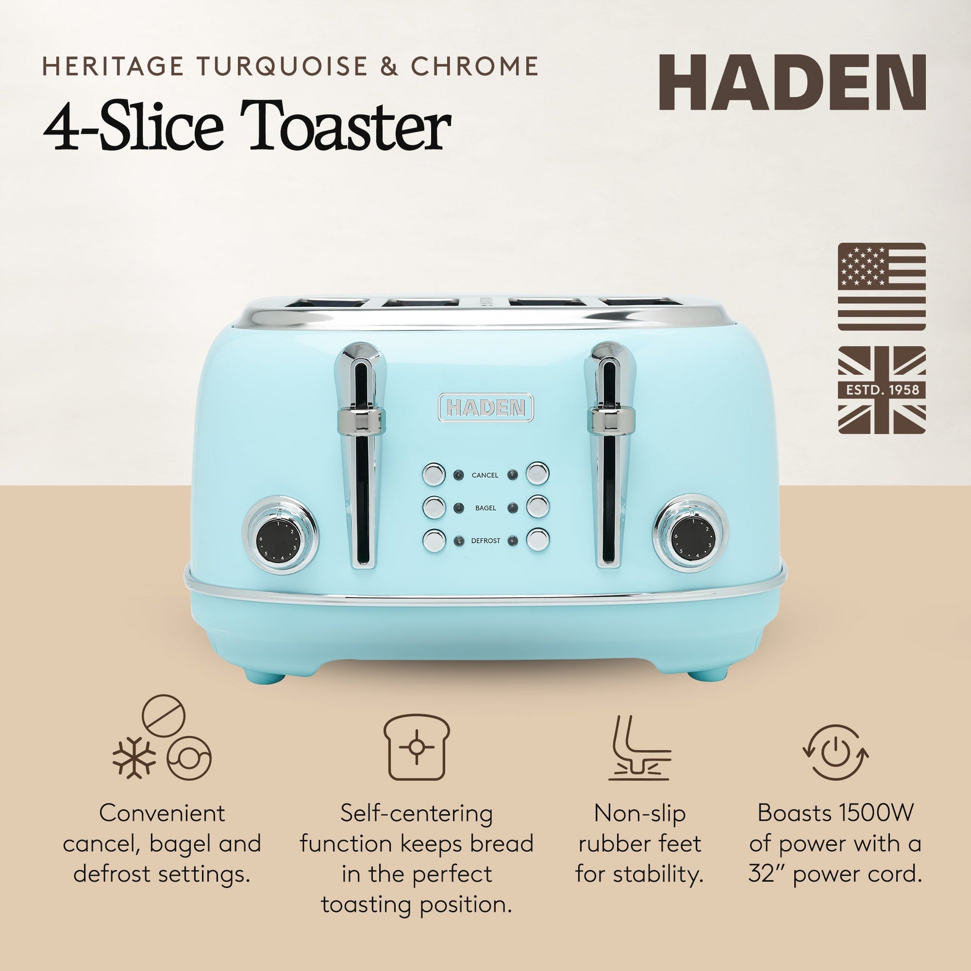 Haden Heritage 4 Slice Wide Slot Stainless Steel Toaster, Turquoise & Chrome