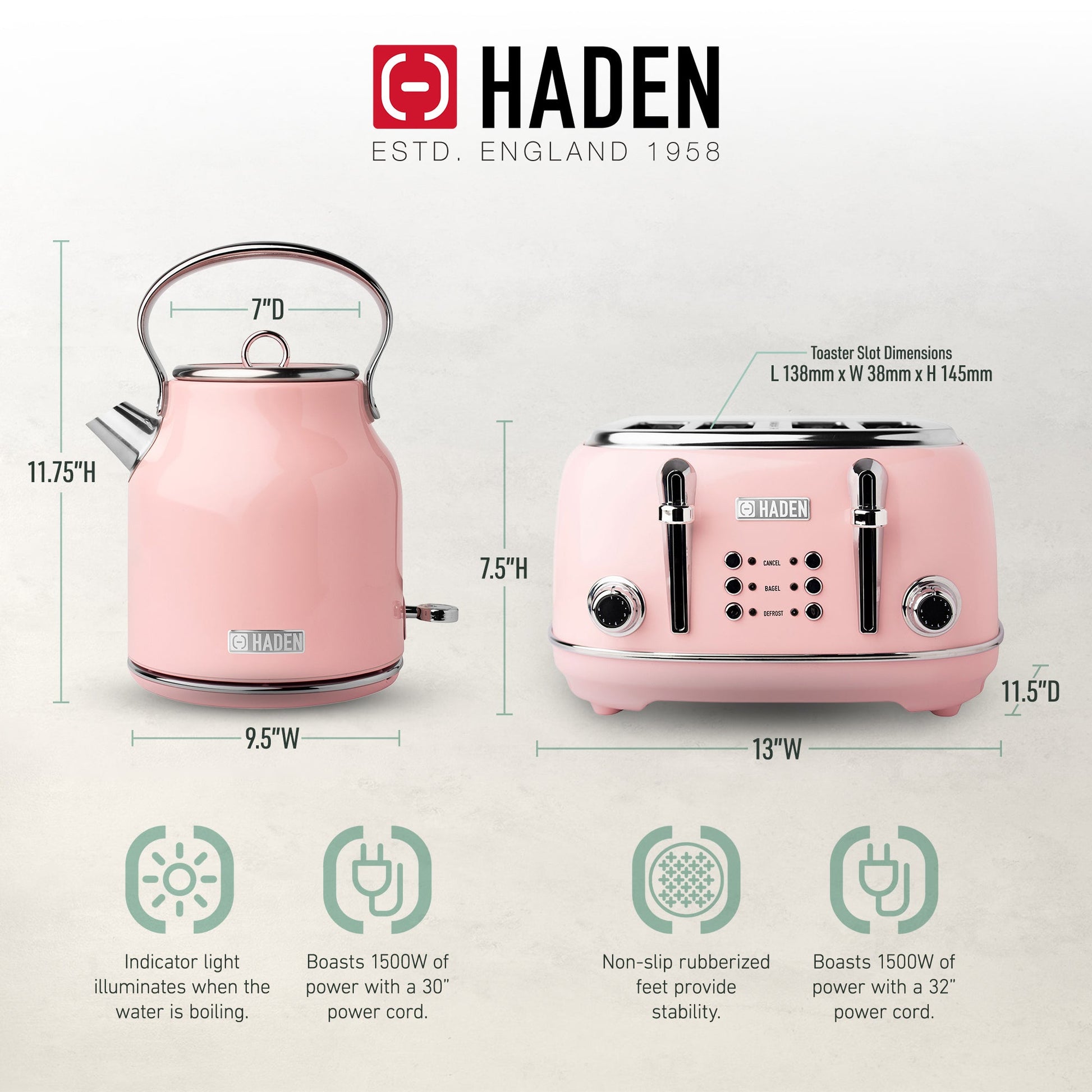 Haden Heritage Electric Water Kettle & 4 Slice Wide Slot Toaster, English Rose