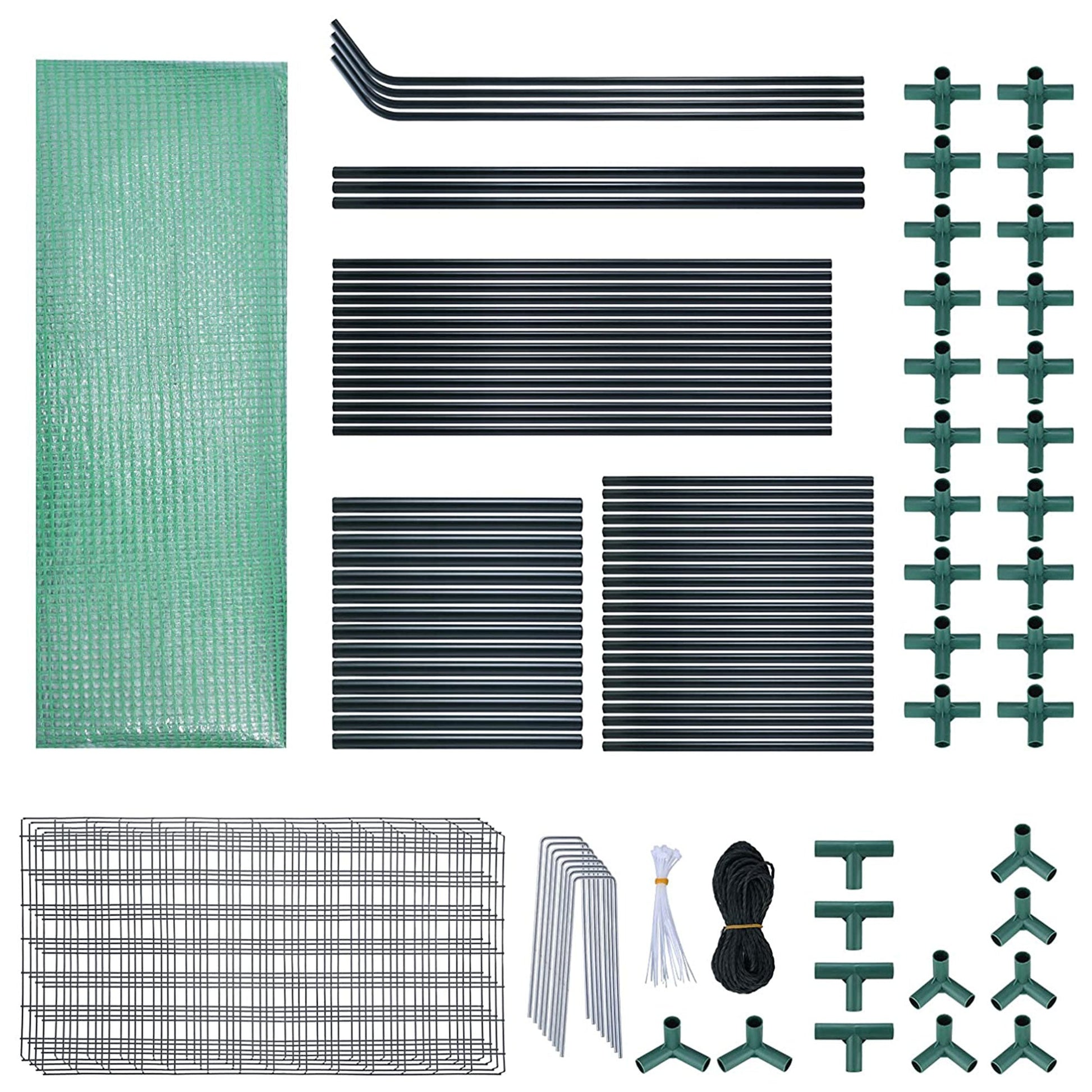 - Constructed with a PE protective cover and a rust-resistant tubular iron frame, with 8 ground spikes and 16 zip-ties included for added stabilization