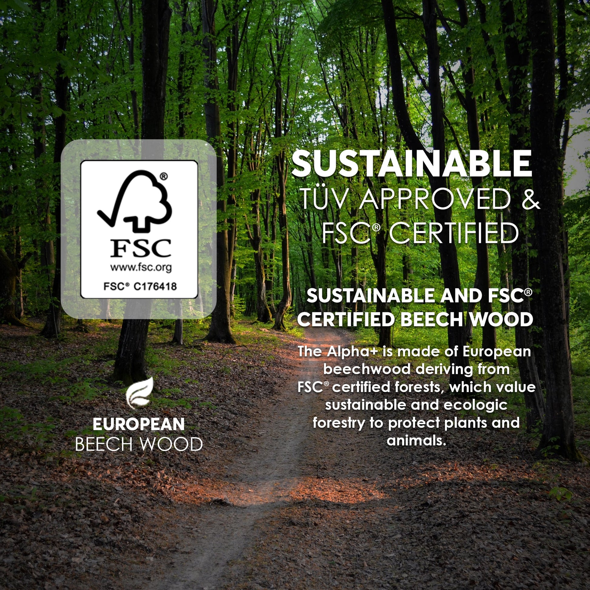 Alpha+ high chairs for babies and toddlers pack a number of features for a worry-free experience for first-time parents and experienced parents alike. This baby high chair is carefully constructed from European Beechwood that is Forest Stewardship Council certified. You know that what you buy for your baby is sustainable and ethically sourced.