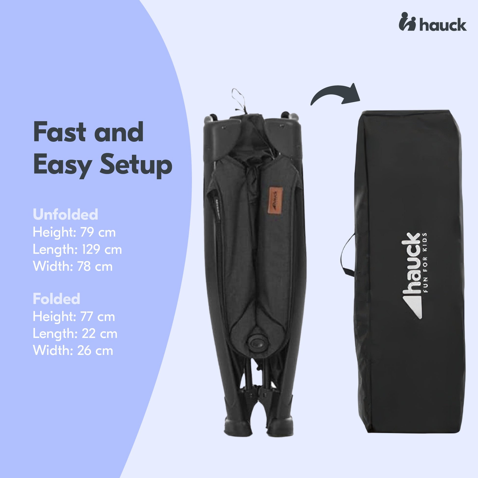 Provide comfort, convenience, and fun for your little one with the hauck Play N Relax Center Portable Baby Playard Crib with Travel Bag.