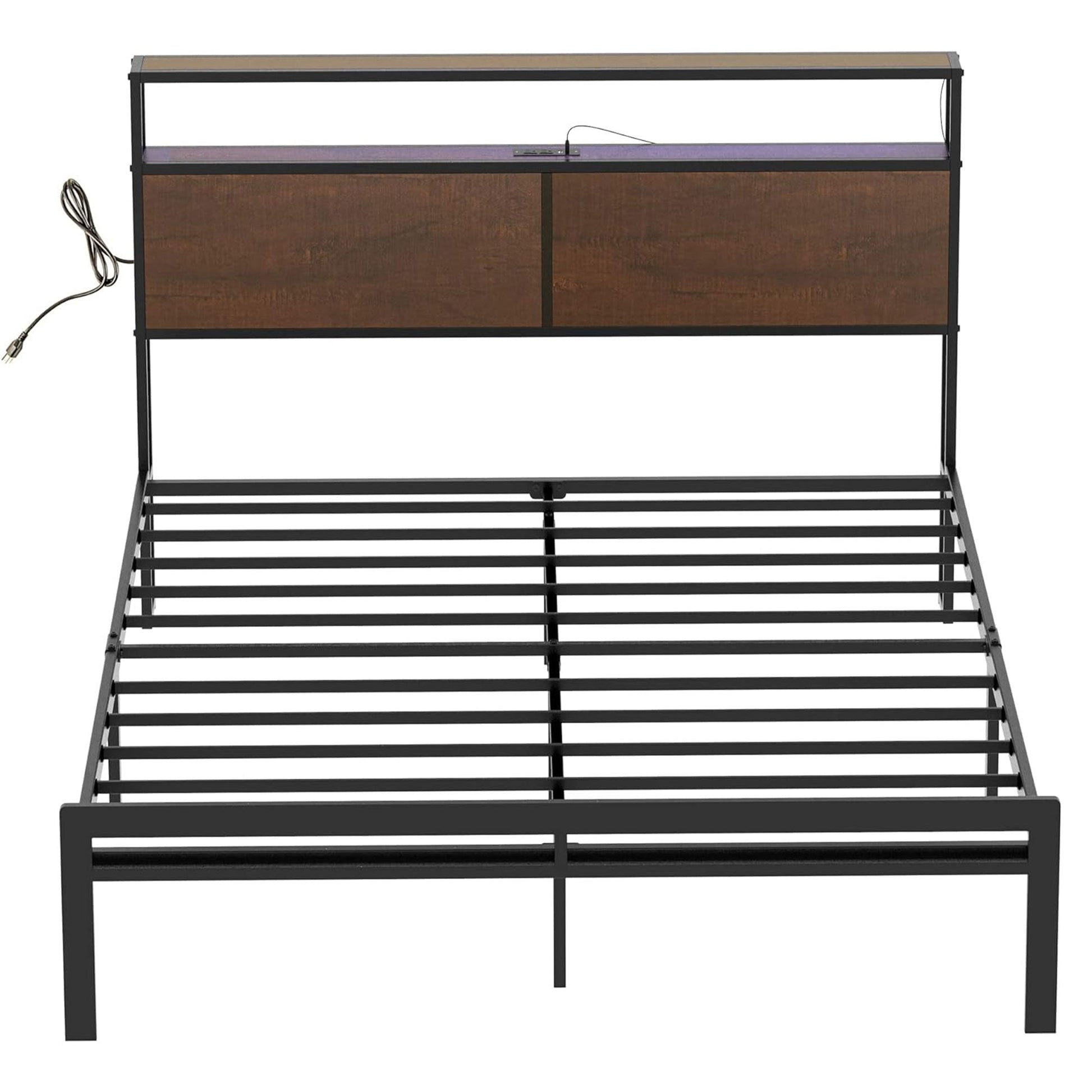 HAUSOURCE Queen Bed Frame with Storage Headboard Metal Platform Bed with Stopper