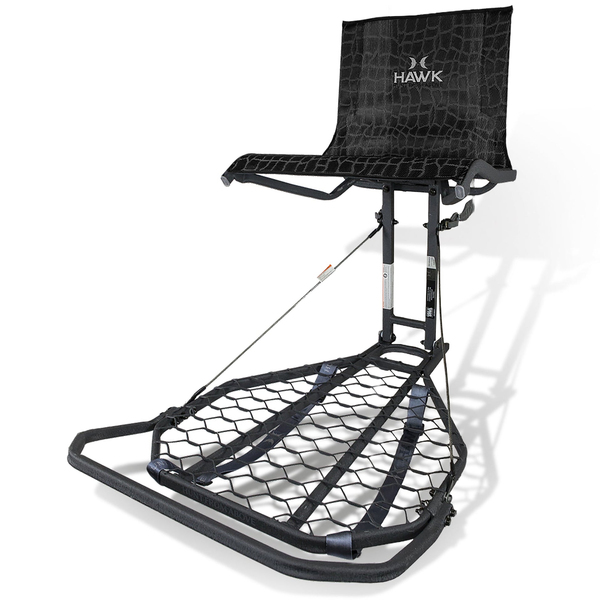 Hunt from one of the most comfortable seats in the woods. The Hawk Kickback LVL Hang-On Tree Stand features an extra-large, contoured mesh comfort lounger seat that delivers zero-pressure comfort, allowing you to wait in comfort for game.