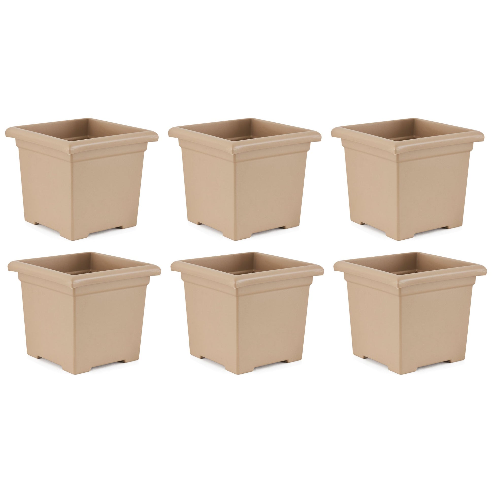 - Comes with (6) 13.25-inch deep 15.5 15.5-inch wide square plastic accent planters ideal for outdoor container gardening on your patio, porch deck, or balcony