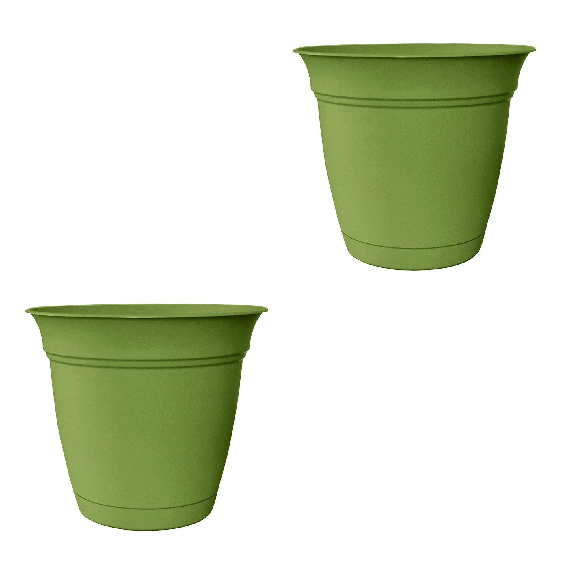 HC Companies ECA08000 8 In Eclipse Planter with Attached Saucer, Green (2 Pack)