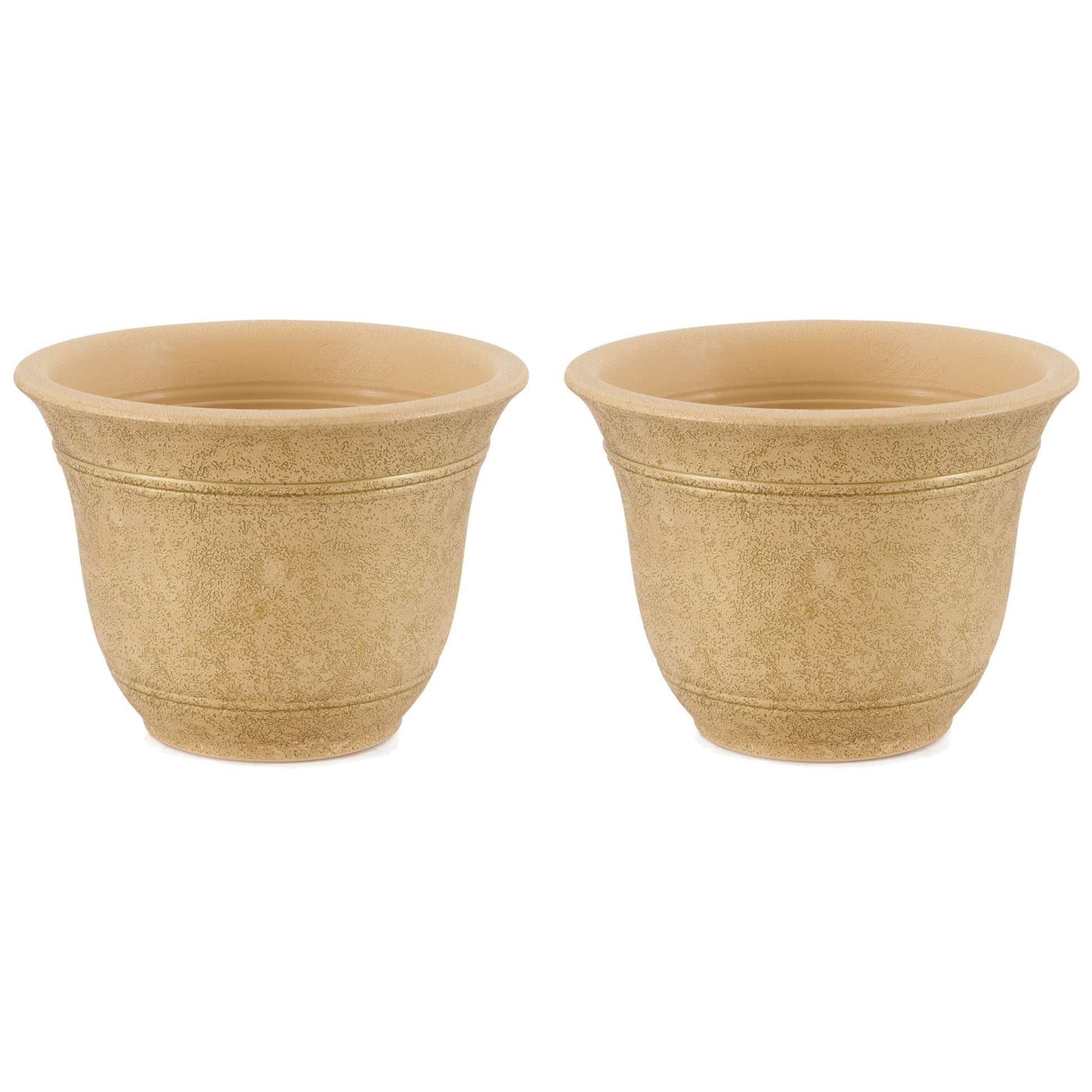 HC Companies Sierra 10 Inch Round Garden Planter Pot, Arizona Sand (2 Pack)